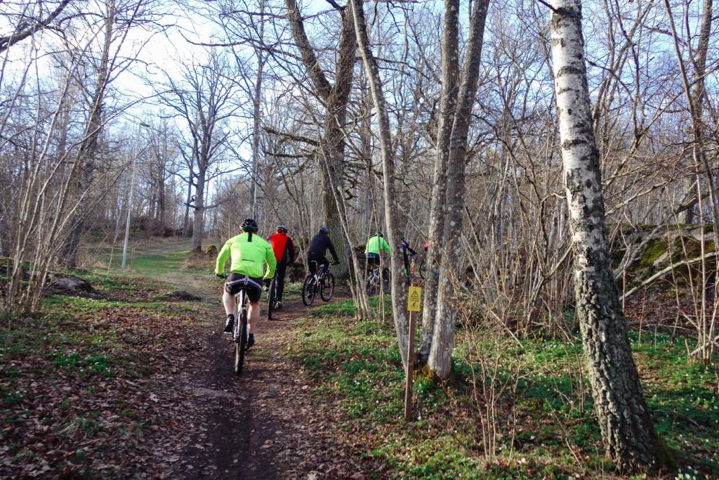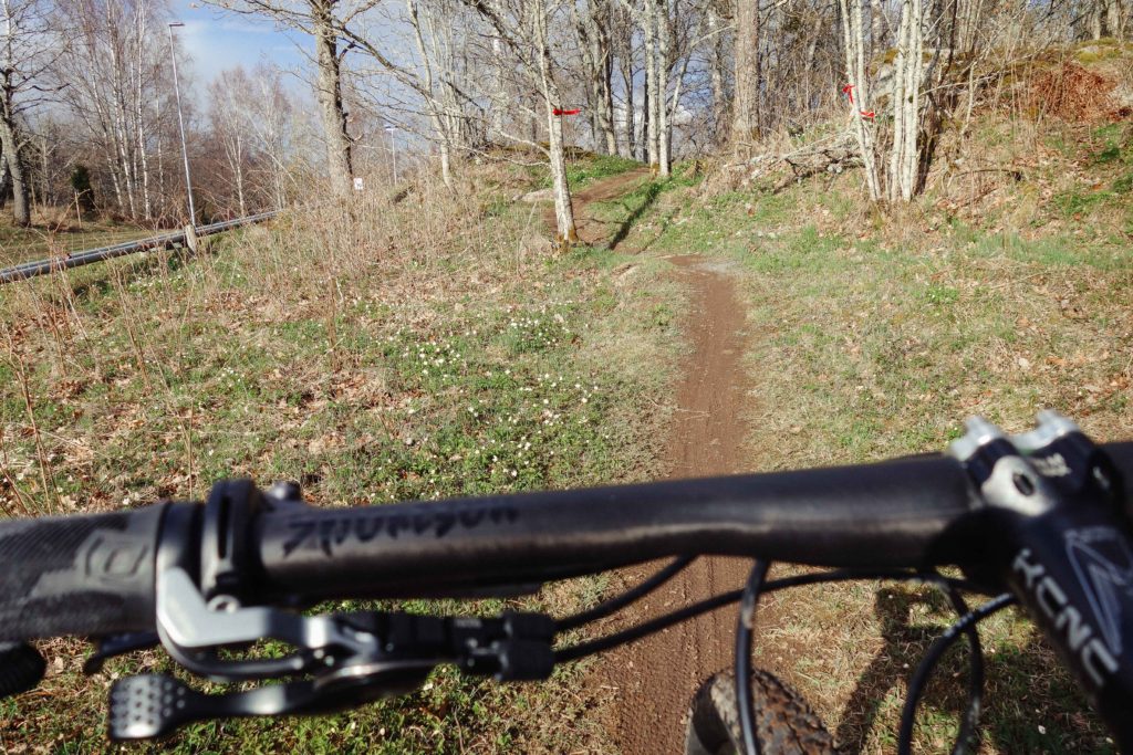 Jag har inte varit med på någon av träningarna i vår men igår bestämde jag mig för att hänga på – min mamma och en tjej till leder en vuxengrupp i ett tempo som passade mig helt perfekt och jag hängde på dem. Det blev varvbana bort i hästhagen och det blev små stigar i Egnahem och innan dess körde jag ett par varv på en av klubbens MTB-banor vid stugan.