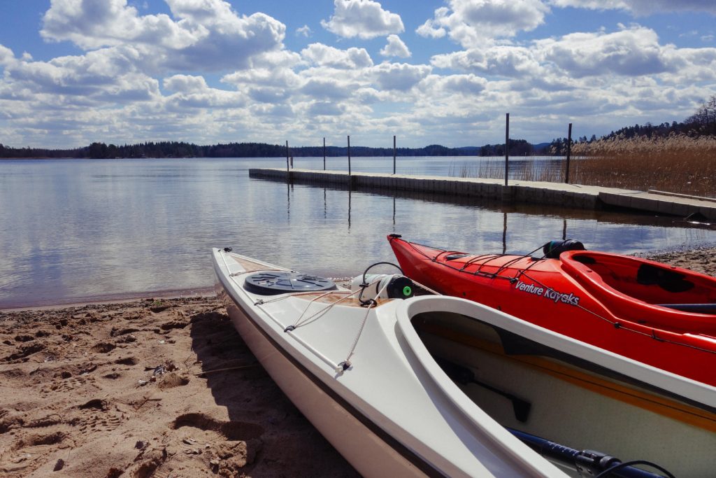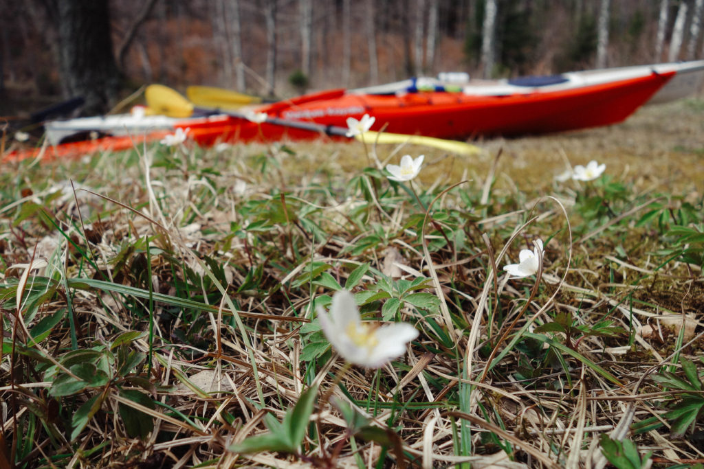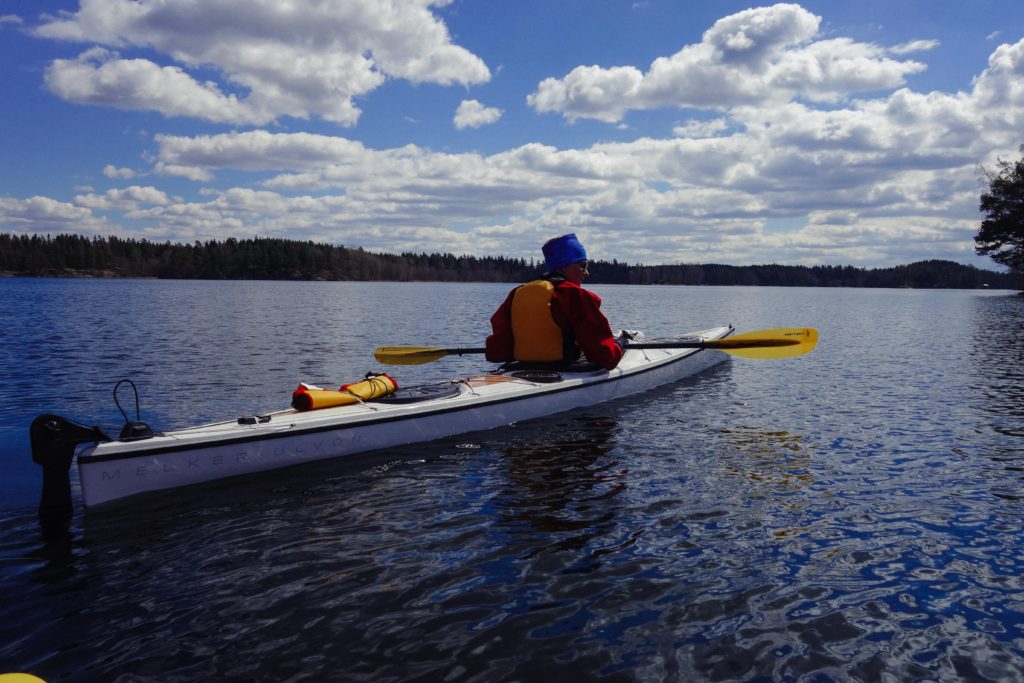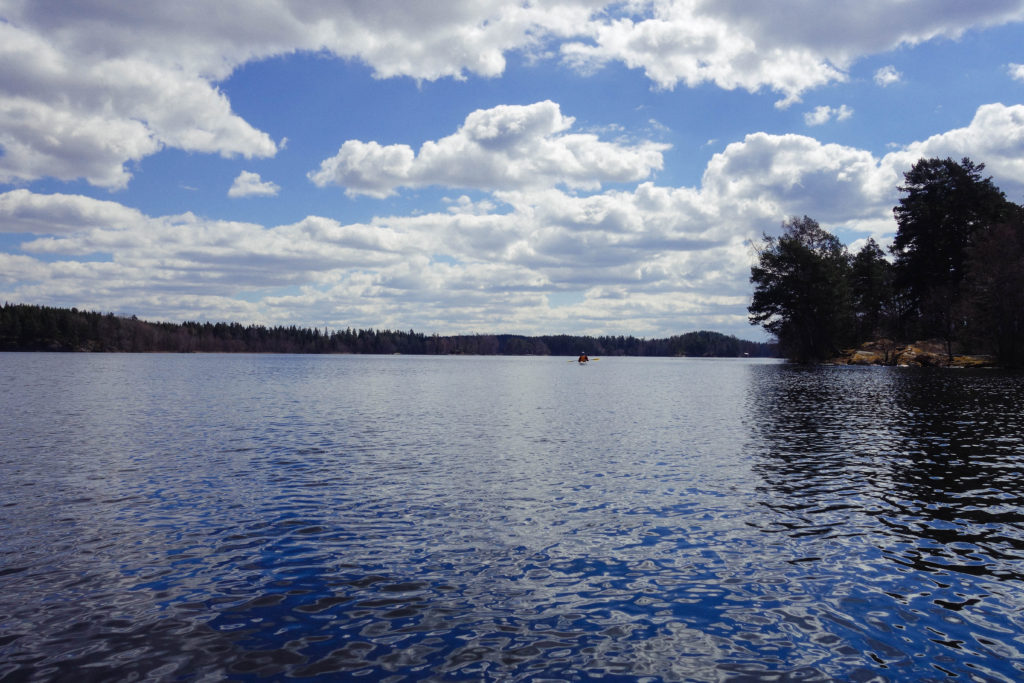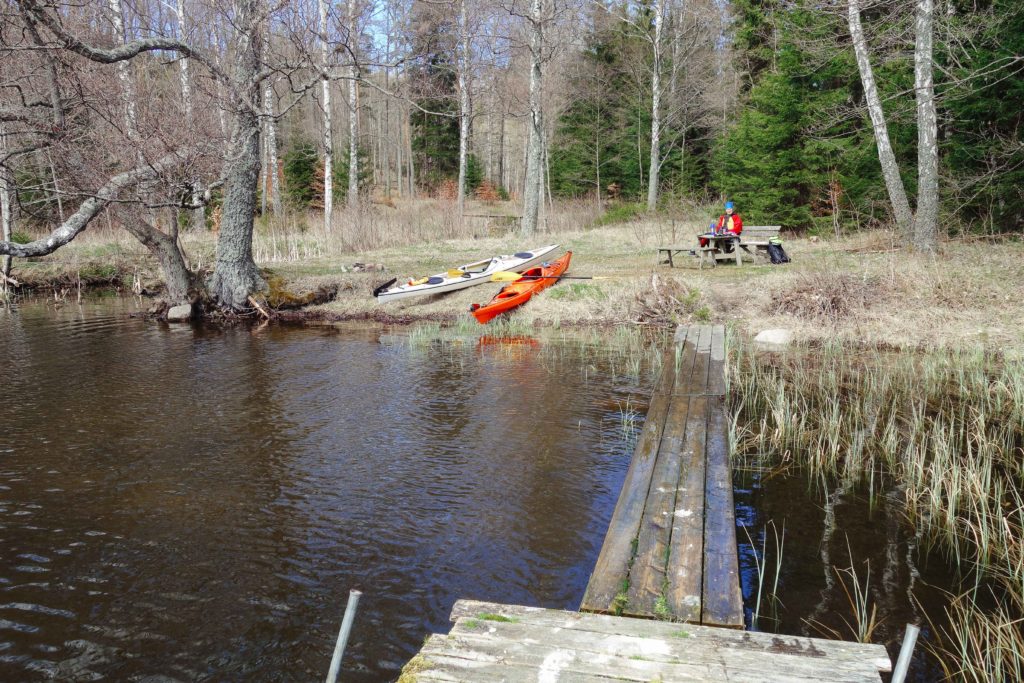 I övre Kvarnsjön stannade vi till vid en liten strand där det var enkelt att ta sig i och ur kajakerna och så packade vi upp fika och satt en stund och småpratade och fick lite vårsol i ansiktet innan vi paddlade hemåt igen. Vi stack iväg strax innan lunch och klockan var nästan fyra när vi var tillbaka i Bunnström – lustigt för det kändes som om vi bara varit ute en kortis – tiden går fort när man har det fint.
