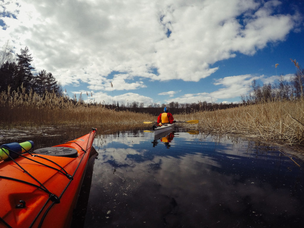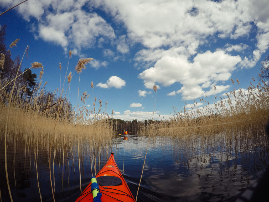 Mellan Alviken och Fågelviken svängde mamma och jag in på kanalen som går mellan Bunnsjöarna och övre Kvarnsjön. En smal vattenspegel mitt i gyllene fjolårsvass, ett svanpar simmade framför oss och det var så himla fint. Mamma paddlade framför mig och hennes kajak speglade sig så vackert mot vattnet, jag tycker det är en stilig kajak hon skaffat sig.