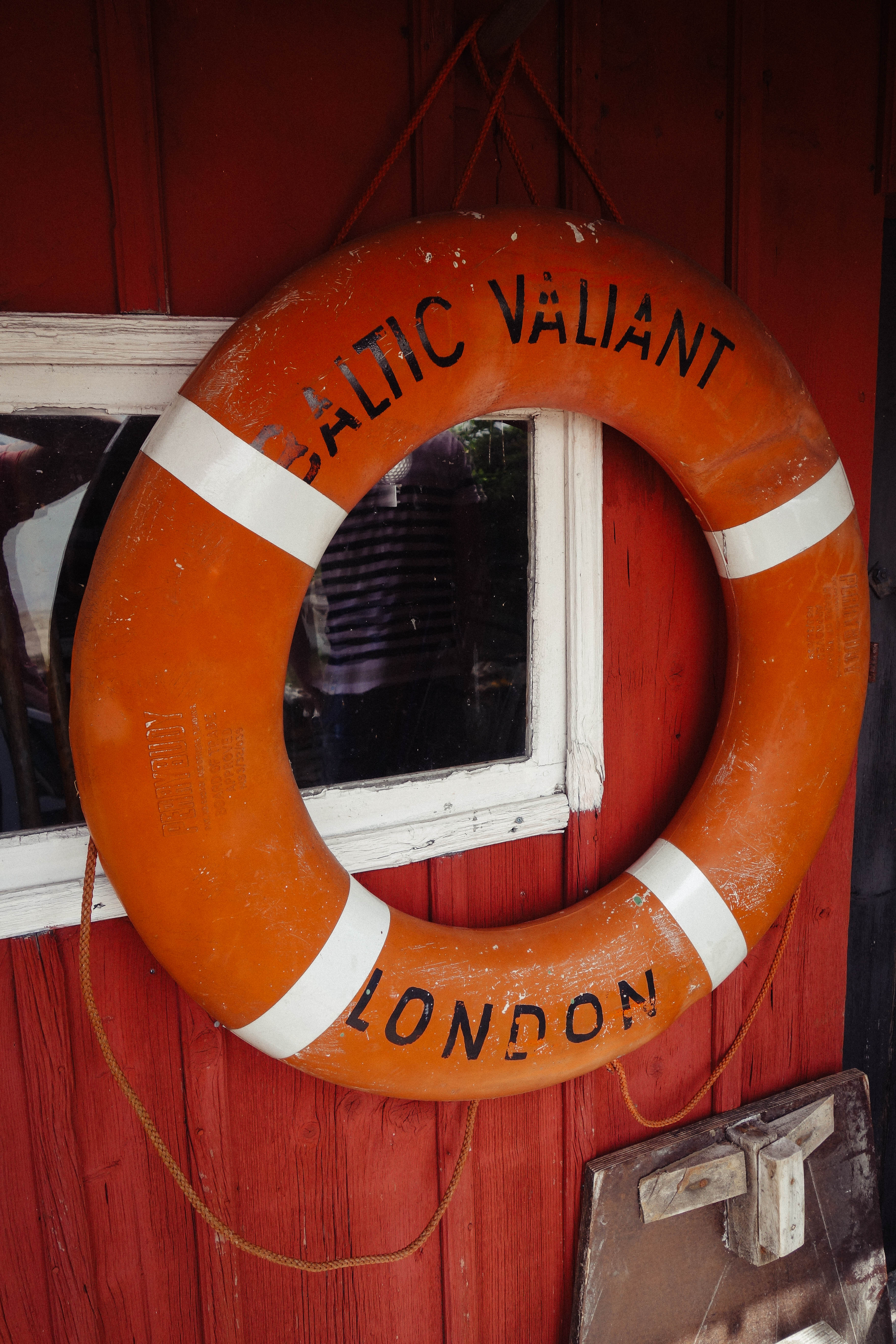 Därav livbojen från Baltic Valiant, hjälm som tjänstgör som fågelholk och plaststol som endast får användas på soldäck på en färja.