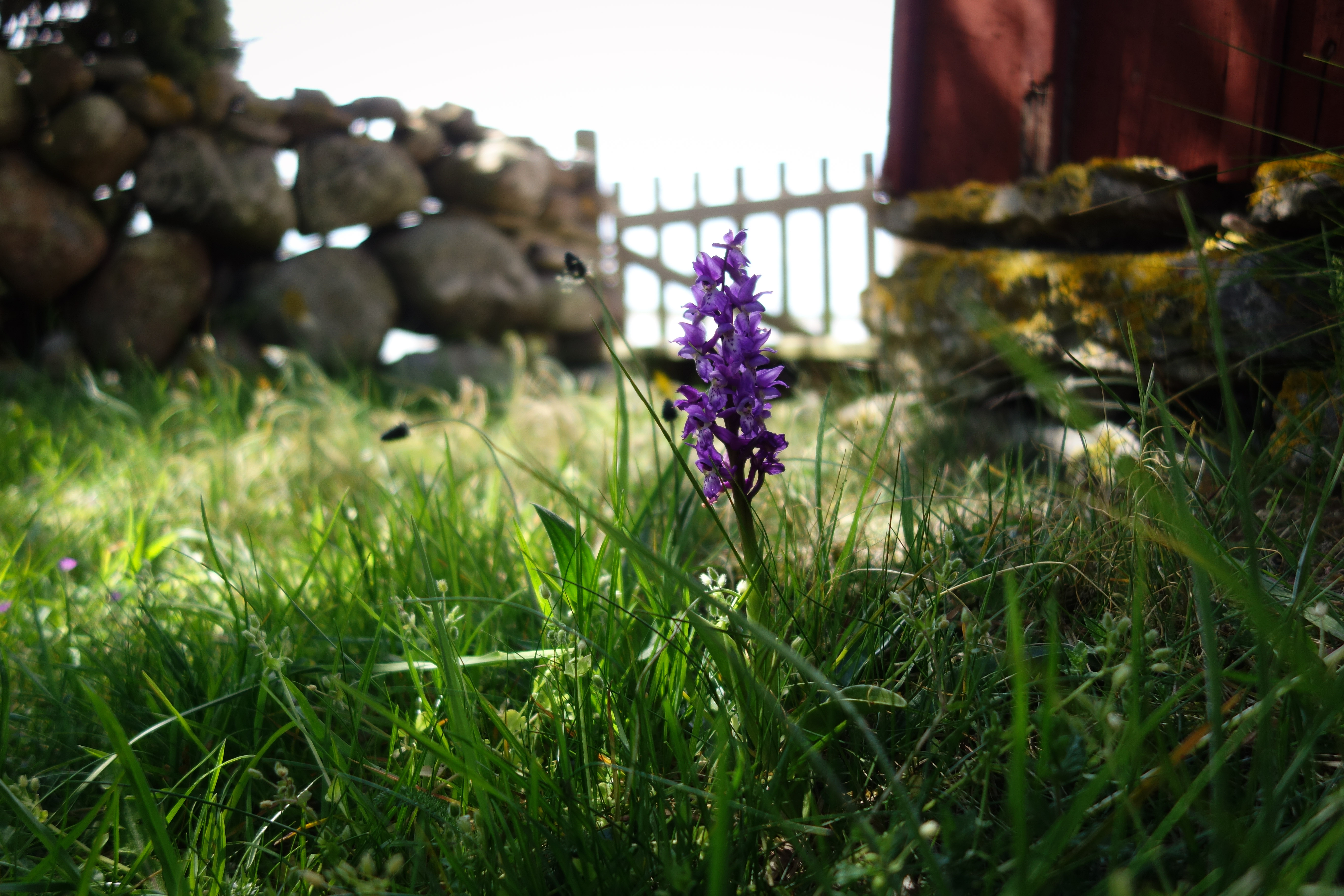 I maj blommar orkidéer och majvivor mellan tornbuskage, stenmurar och enbuskar och bilderna knäppte jag när vi var där för ett par-tre veckor sedan och hade sådan tur med vädret att det kändes som en semestervecka. Lite kallt i vinden men soligt och härligt och ljuvligt. Vi var lite förvånade över hur mycket folk det var på udden då, vi är liksom vana att ha den ganska mycket för oss själva – nu var det full kalabalik när stadsborna parkerade in grindar som man ska kunna öppna. Det berodde förstås på orkidésäsongen och långhelgen – många botaniskt intresserade var där för att kika efter vackra blommor.