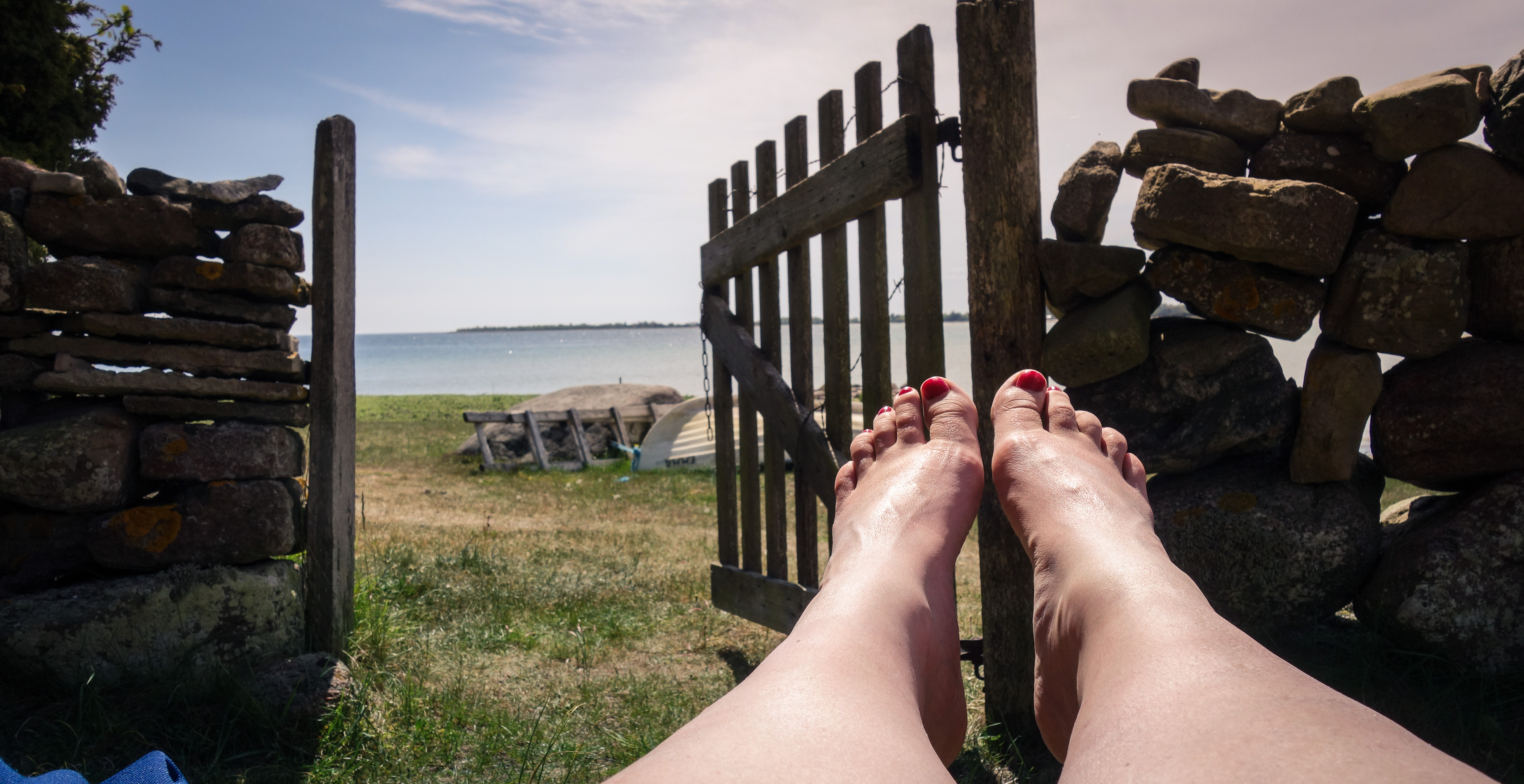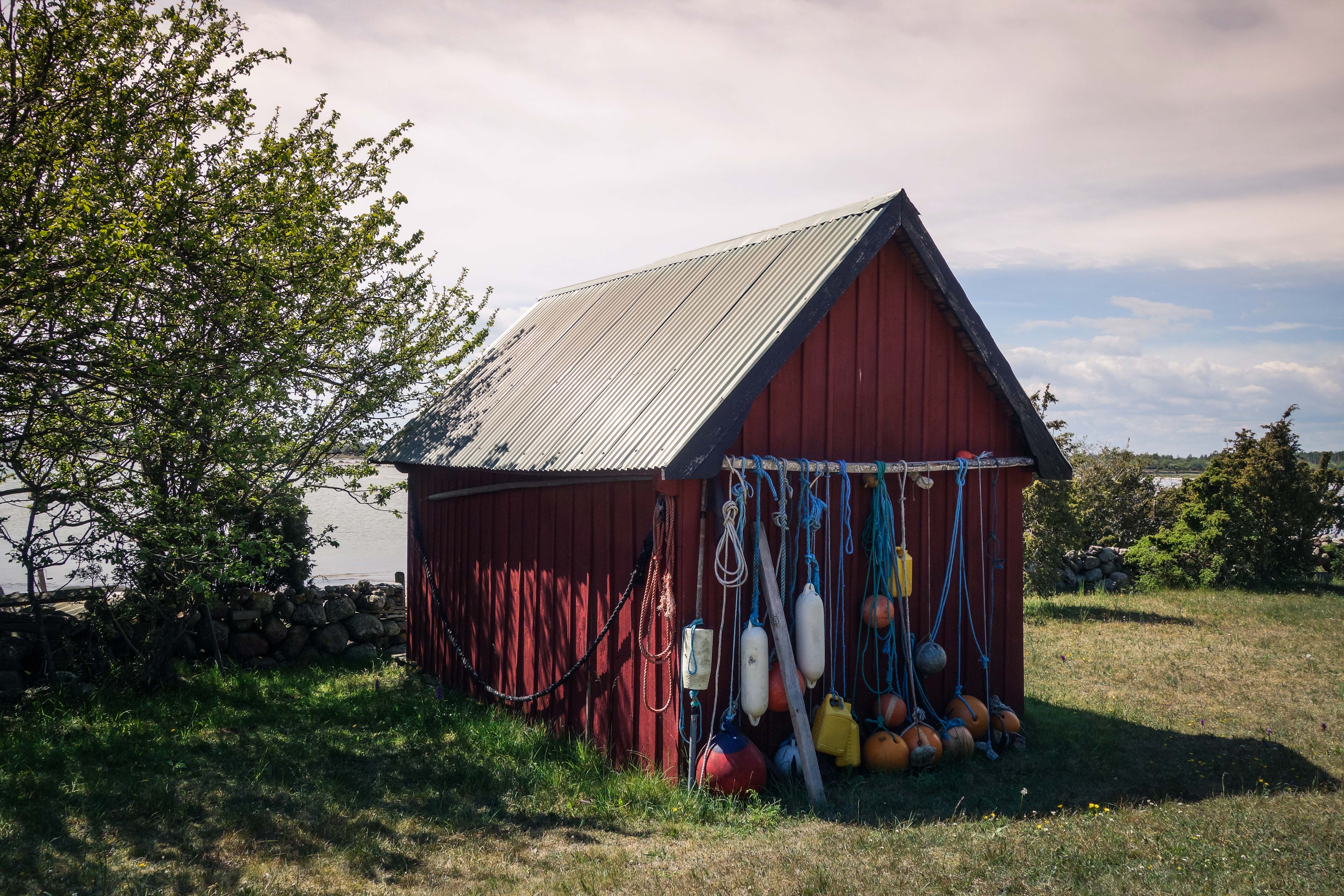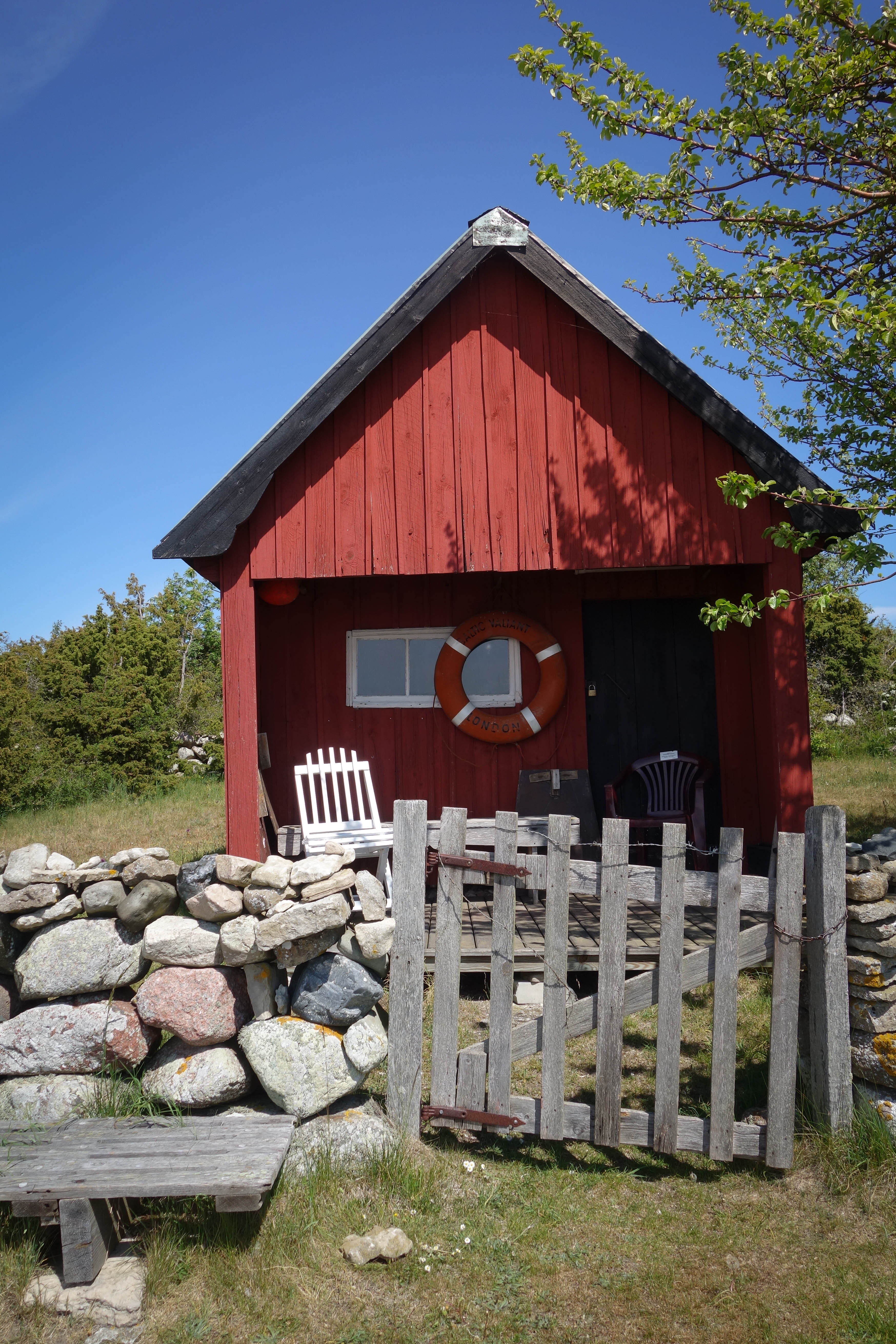 När man kommer hit en sommarmorgon får man oftast flytta på en kossa innan man kan ta sitt morgondopp, de gillar att hänga i vattenbrynet vid stranden nedanför sjöbodarna. Viken är långgrund, man kan promenera rakt över den, och bottnen är sådär lent sandig och hela udden är en liten idyll och jag tänker ofta att jag borde nypa mig i armen som får lov att öppna grinden till en av sjöbodarna och sätta mig i skuggan bakom en stenmur och kika ned mot vattenblänket vid stranden.