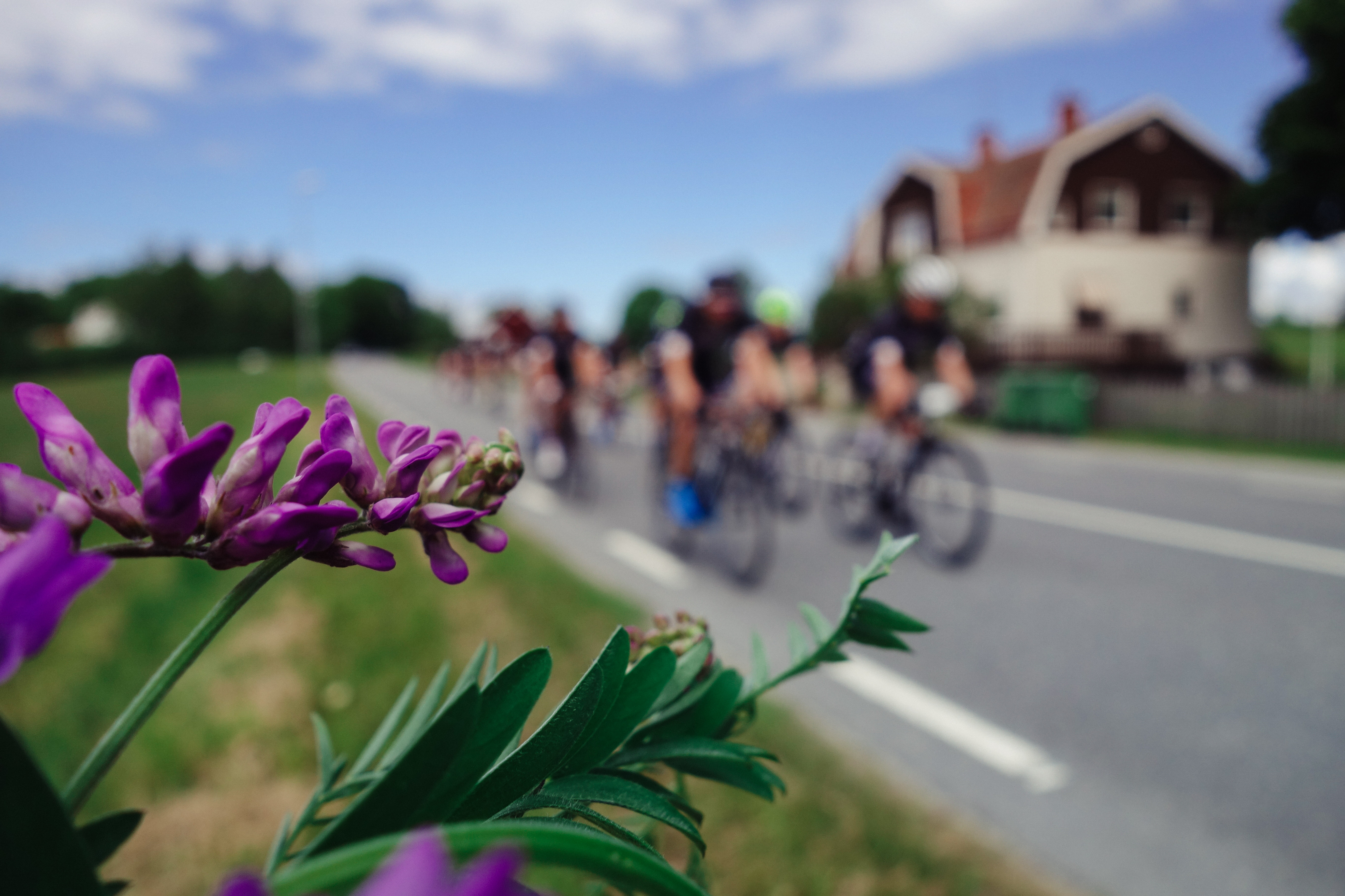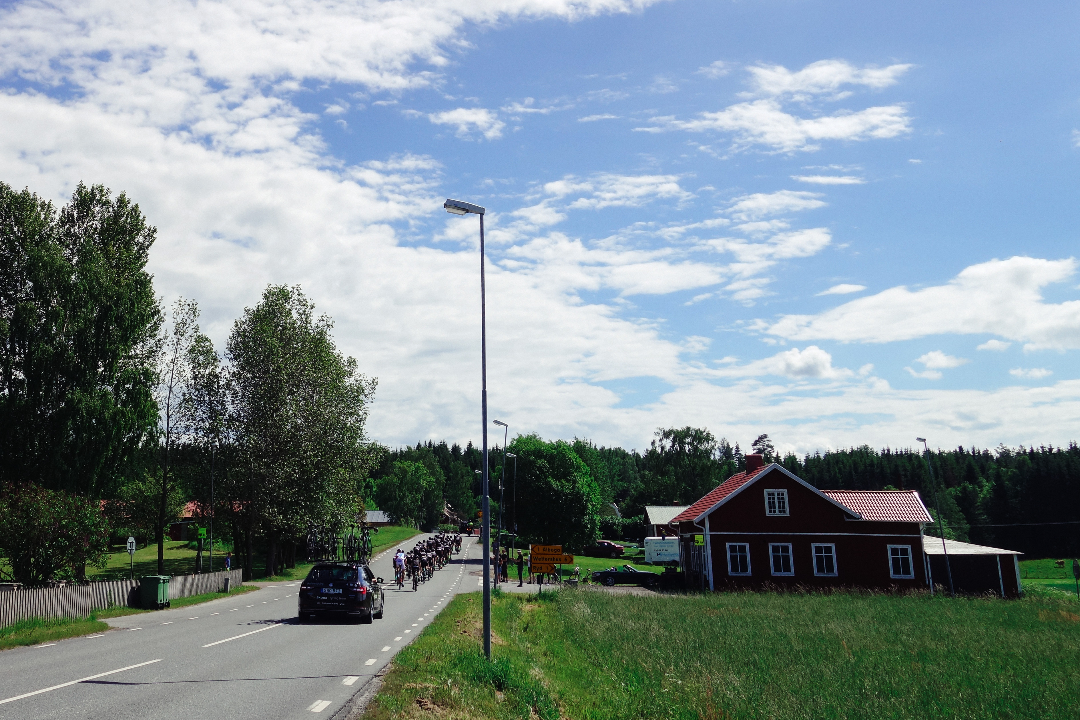 Vi var i väldans god tid och jag sysselsatte mig med att knäppa några bilder på sådant man ofta ser längs med vägarna här hemomkring, typ blommande kråkvicker, Tobias Ludvigsson med sällskap och vackra vägar. Ludvigsson hejade glatt och kom faktiskt tillbaka instagrammandes på rulle en stund senare.