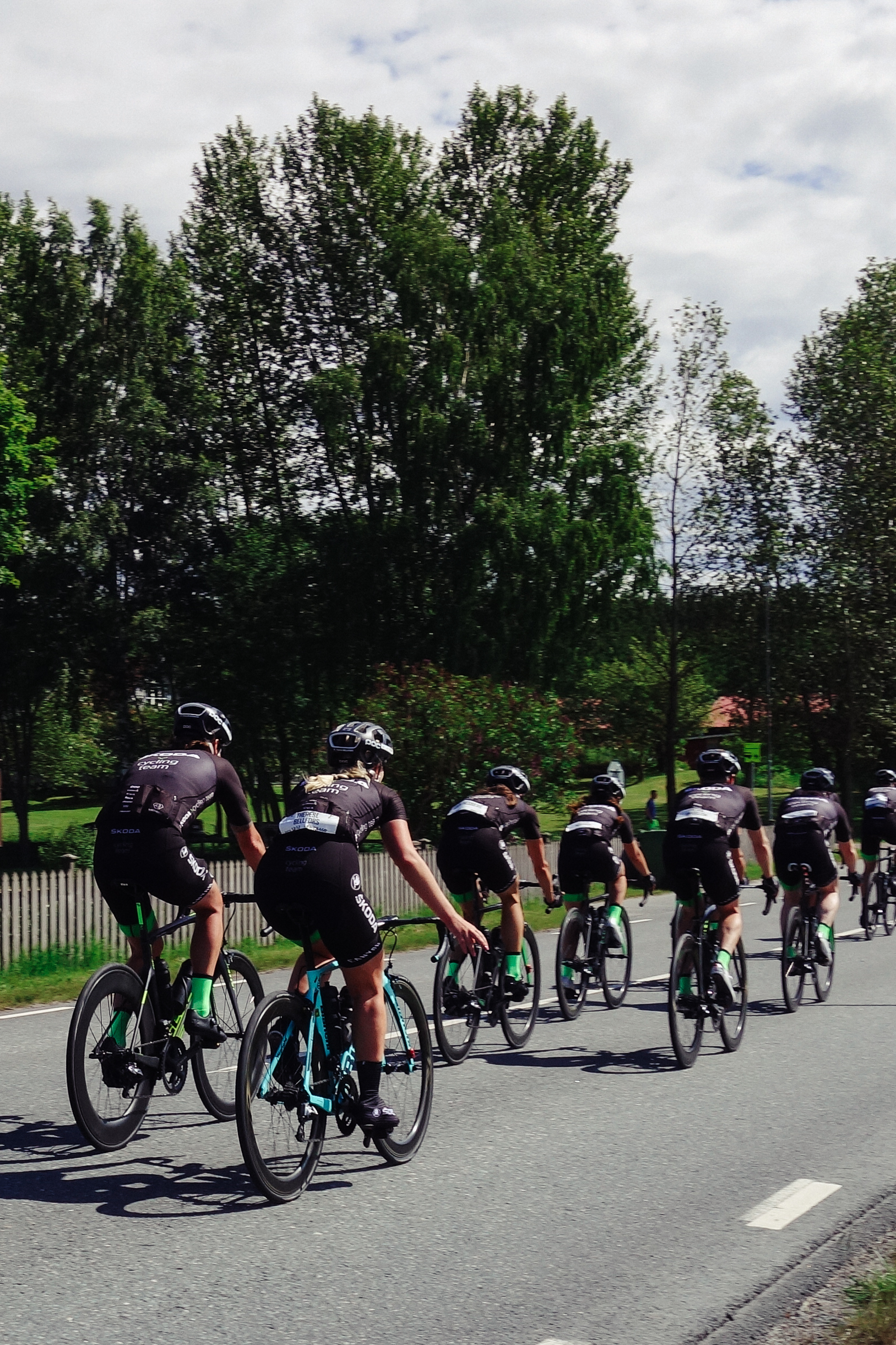 Efter att ha spanat på massor av grymma klungor kom så äntligen Team Skoda. Jag ville ha en fin bild på bästa Tessan som körde sin första runda. Respekt – hon och resten av klungan gick runt pölen på 7.27 – är tokigt imponerad. Den där fina bilden jag hade tänkt mig blev en typisk #foreverbuttphotos istället för ett snyggt klick framifrån – men det viktiga var väl förstås att få heja på.