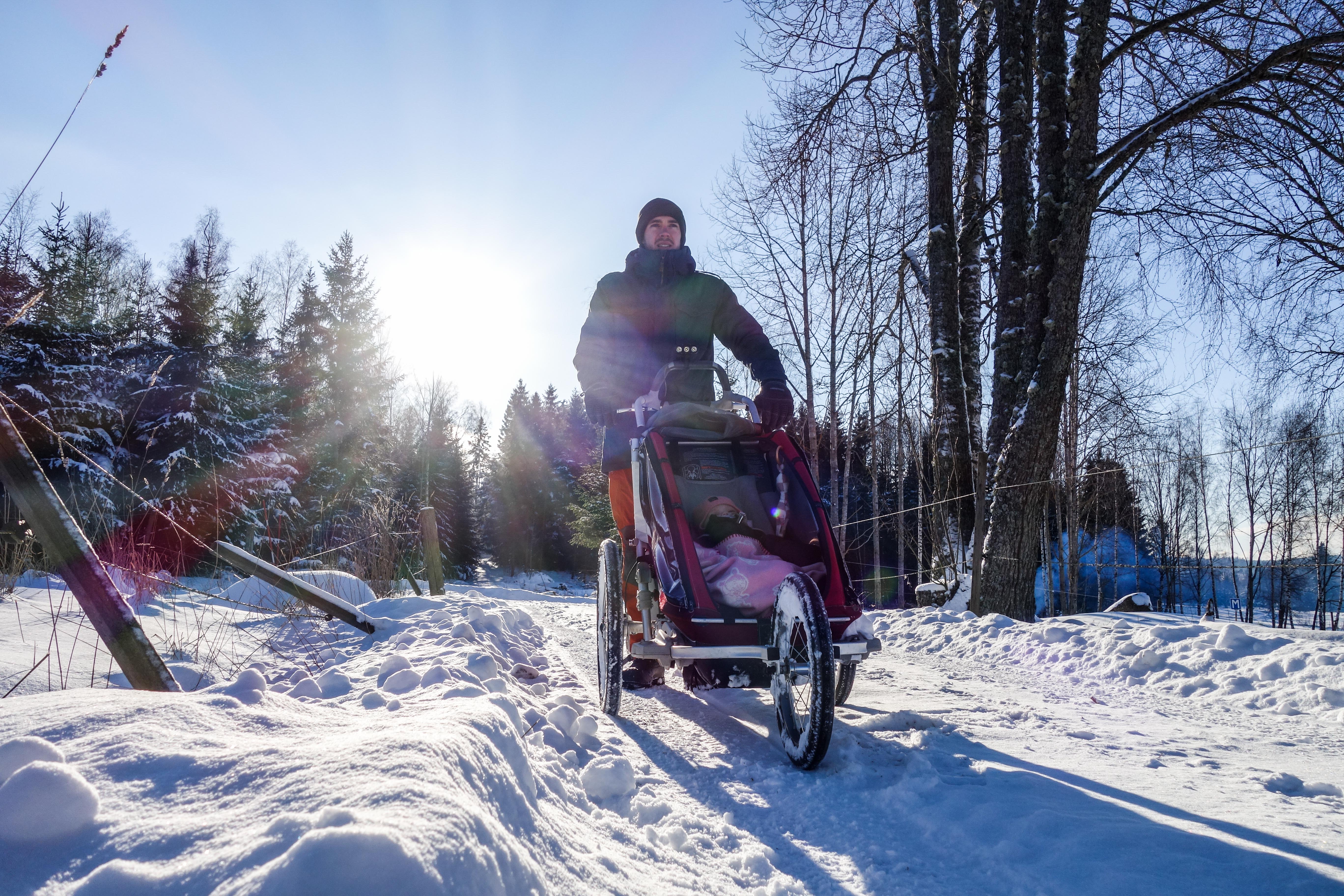 Hörrni, februari levererar ju förstklassigt. Vi har fått ett par decimeter snö och efter en lördag i Göteborg passade vi på att gå en lååååång söndagspromme hemomkring för att få så mycket sol som möjligt och så mycket familjetid som möjligt. Alla var trötta, särskilt bäsi, och vi behövde oss-tid. Prattid. Kvalitetstid i kängor till vuxna och massa vagnsömn åt cykelfrö.