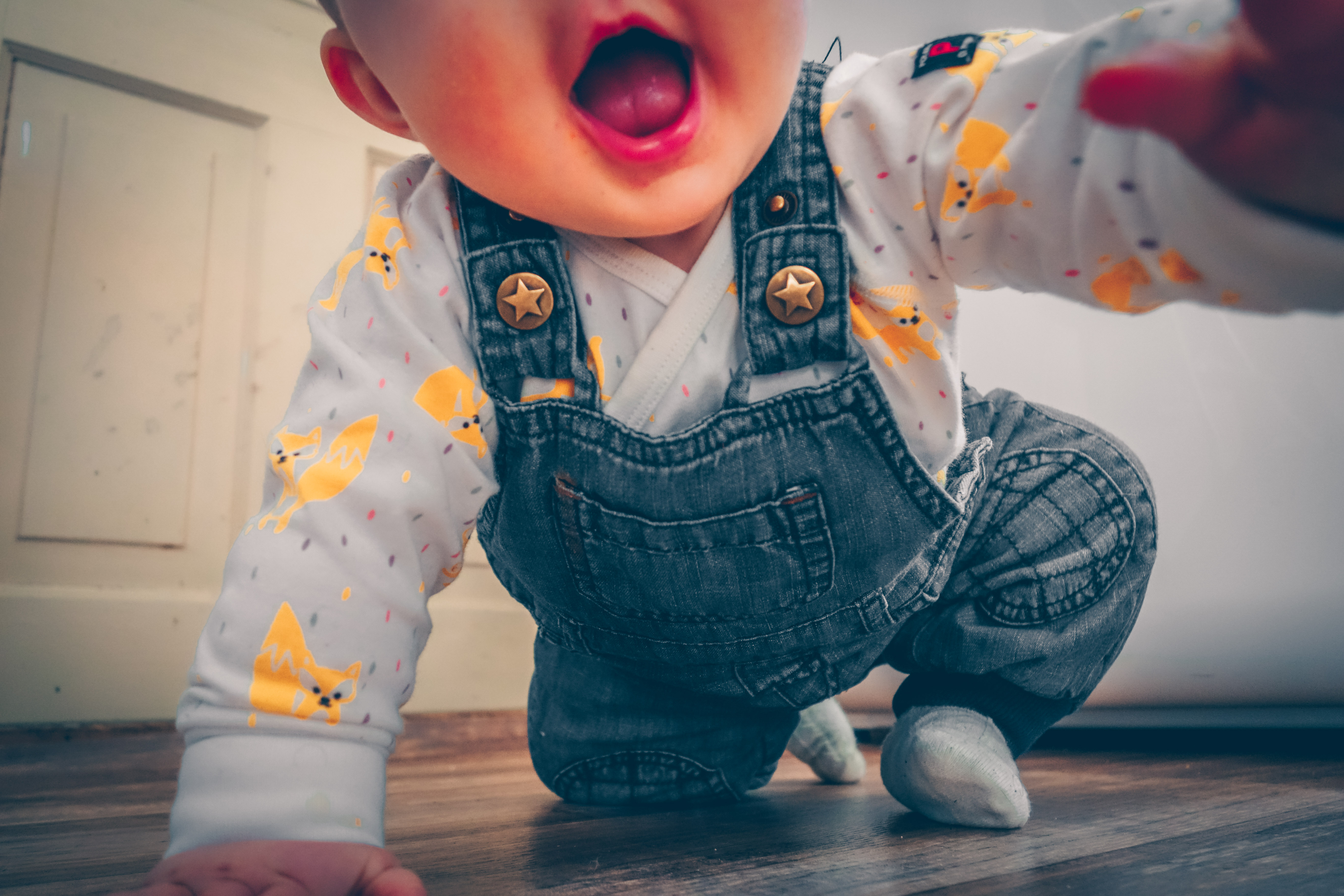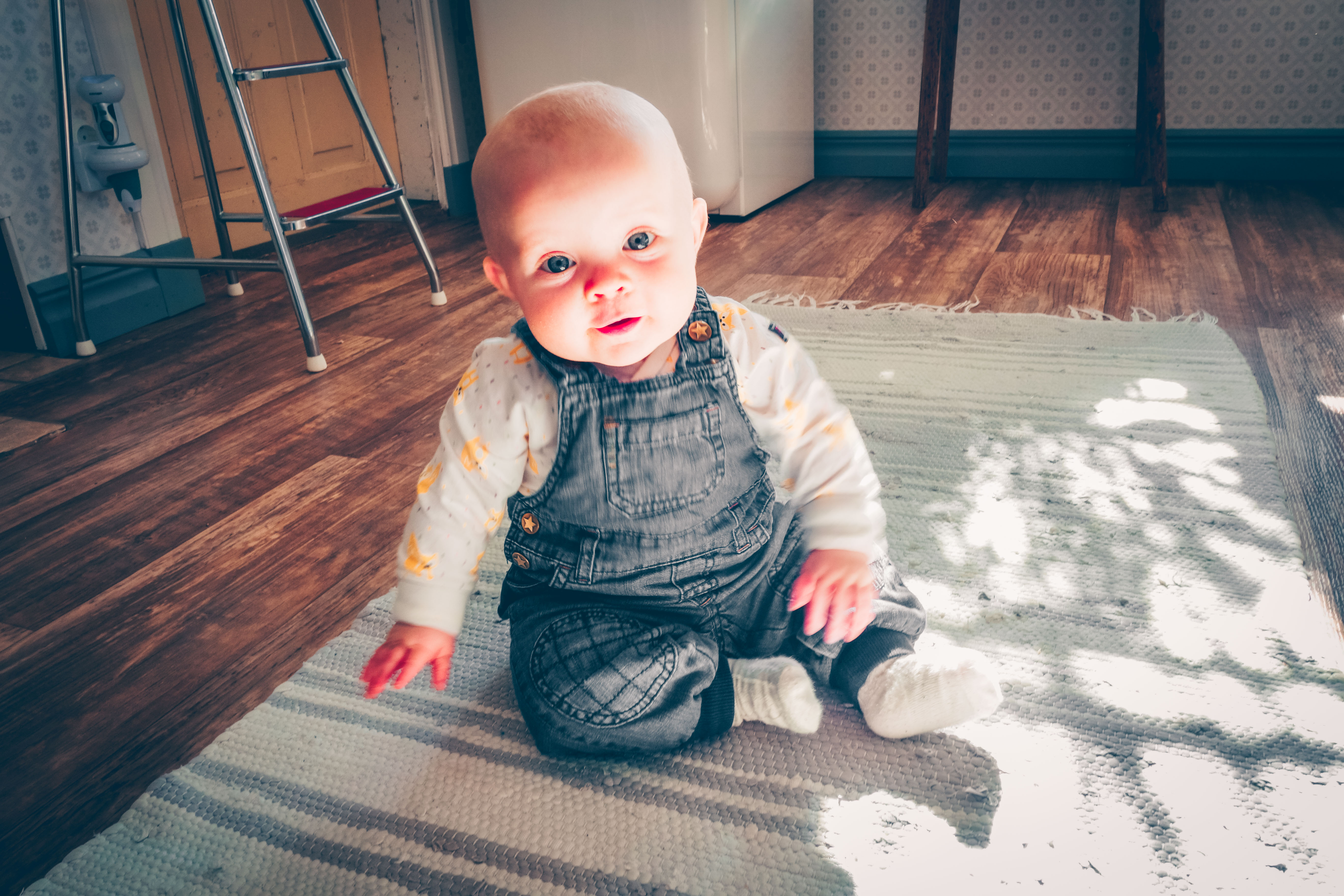 Du kunde sitta själv redan när du var fem månader och nu kan du ta dig från liggande till sittande och från sittande till liggande. Lätt som en plätt. Om vi sträcker ut våra händer mot dig tar du tag i dem med ett litet men bestämt grepp och ställer dig upp – du behöver bara lite stöd från mig eller pappa och så fixar du helt själv att ställa dig. Vi har förstås fått ge upp mysiga babykorgen till förmån för spjälsäng för att du inte ska klättra och ramla ur sängen när du vaknar om natten.