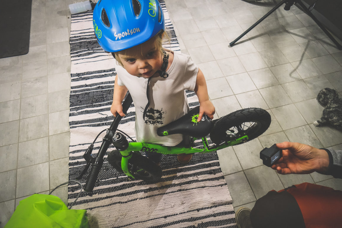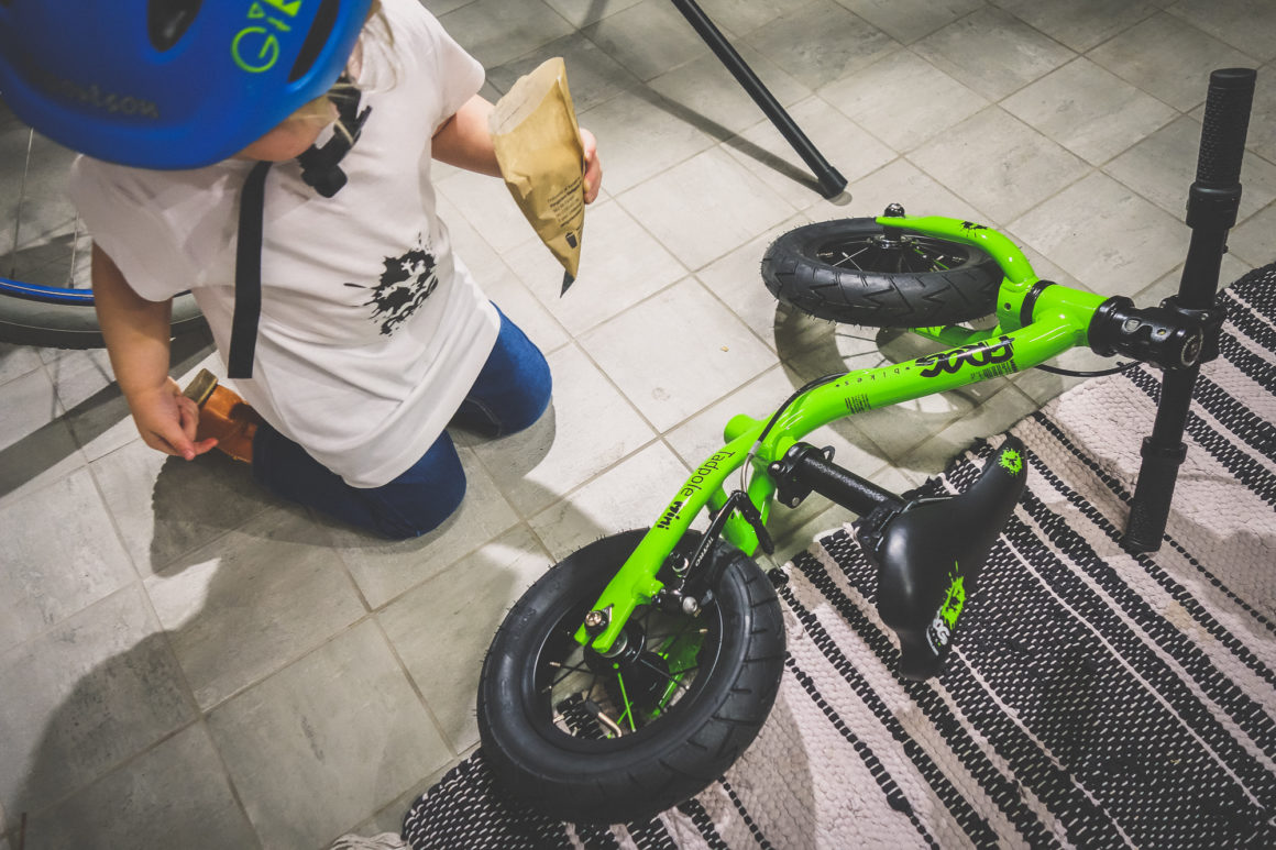 Lovis hoppade grodhopp, skrattade förtjust, drack ur sin nya och alldeles egna cykelflaska och lyfte enkelt runt sin nya cykel och ville genast ut i stormen och cykla. Hon har inte heller riktigt hajat tjusningen med springcykel tidigare men satte sig direkt pĂ„ sadeln och började rulla – helt sjĂ€lv. Den lilla gröna cykeln var sĂ„dĂ€r lĂ€tt och alldeles lagom som jag hade hoppats. Ett cykligt mammahjĂ€rta slog volter, Ă€ntligen, sĂ„dĂ€r har jag lĂ€ngtat efter att se henne med en cykel.