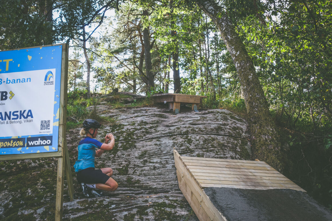 Jag tycker om årets SM-bana. Jag tycker den var rolig. Utmanande med alla igångdrag och korta klättringar, utmanande med Brudarebacken som bjuder på en rejäl dos mjölksyra uppför. Jag tror den är en sådan där backe där man nästan aldrig känner sig snabb och att backstarka cyklister jublar över den. Jag gillar stigarna, jag gillar stenhällarna, jag gillar rotmattorna. Eller – jag gillar rotmattorna när de är torra och fina som de var när jag fick testköra, frågan är om jag gillar dem när det är blött. Om jag får spekulera hej vilt och det får jag, tror jag att det är ganska få mtb-åkare som jublar över blöta rotmattor även om jag vet en och annan som trivs med det också.