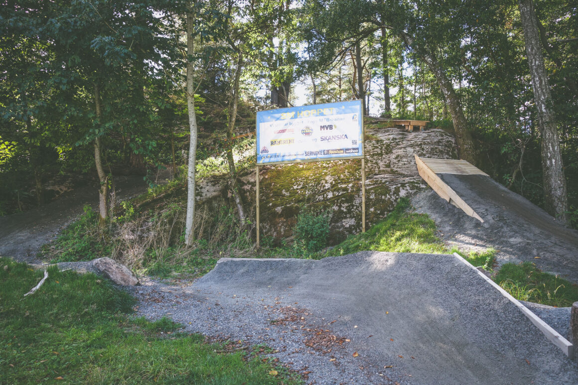 Årets SM-snackis är förstås SM-hoppet. Man röjde bort ett buskage, plockade fram en superfin stenhäll som liksom är stenhäll på sådär klassiskt Göteborgsterräng-vis, och så byggde man ett hopp. Det var brutalt från början och efter lite input från olika åkare har man fixat till det så det faktiskt är ganska snällt. Det är högt beläget vilket gör att det känns läskigt när man närmar sig men den som kan hoppa och droppa sätter det här utan problem. Hoppet är ungefär en cyklist högt och har en bra landning. B-spåret bjussar på lite kurvigt flow och rejält många extra sekunder så vill man spara tid får man helt enkelt ta och battla sin höjdrädsla och nöta hoppteknik.