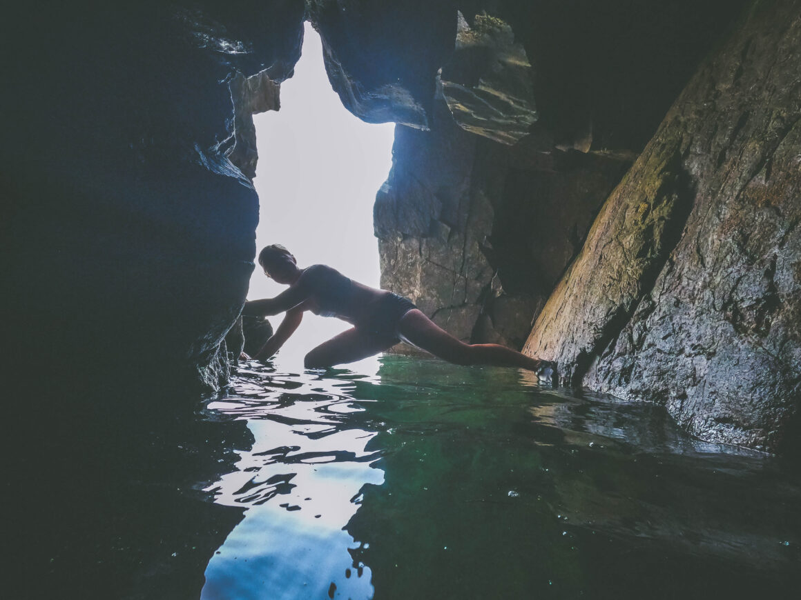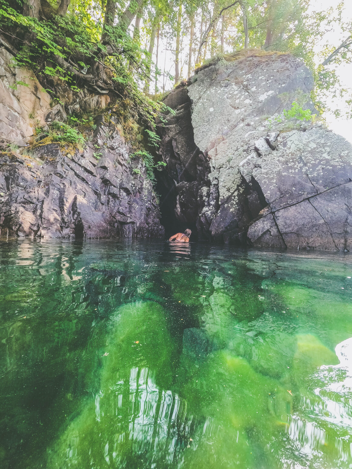 Men grottorna hade jag aldrig vågat mig in i … Har ett minne av en läskig berättelse vi läste i mellanstadiet om nån som simmade alldeles för länge under vatten för att komma ut ur en grotta och sen dess är jag livrädd för grottor i kombination med vatten.