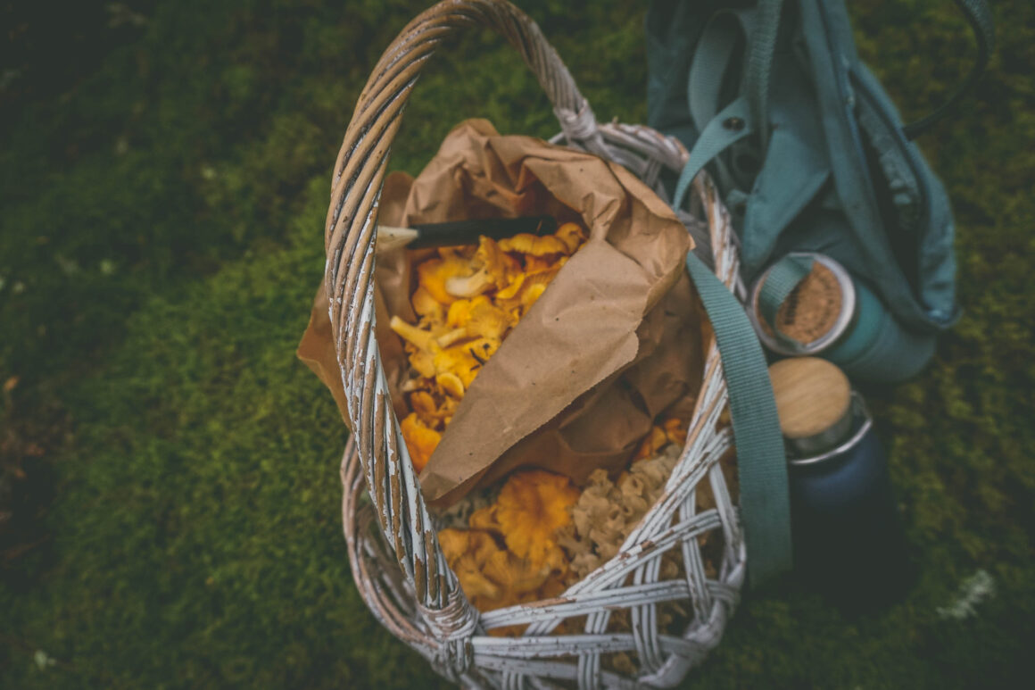 Kängor. Svampkorg. Tystnad. Sex blomkålssvampar på två dagar och mer kantareller än vad som fick plats i korgen. Starkt chai-te i termos.
