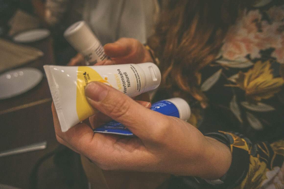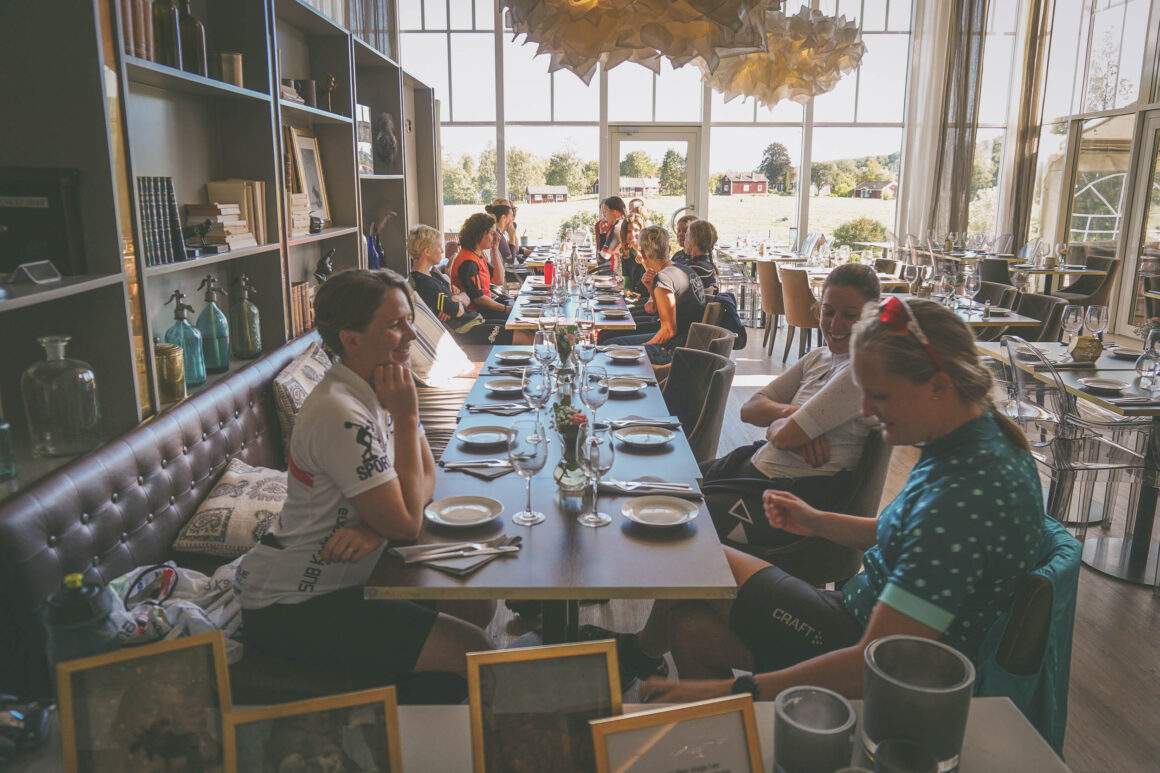 Om kvällen åt vi middag på Bauergården, alla fick en Cykellycka goodiebag med fina saker från Vän och Medevisalvan och vi hann snacka mycket cykel innan det var läggdags.