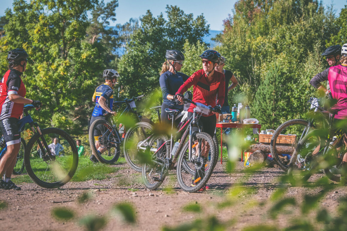 Efter lunch rullade vi till GBOK MTB Arena på Grännaberget. Halva gänget cyklade och halva tog bilen – man fick välja själv hur man ville ta sig. Är man inte van vid att cykla väldigt mycket kan det vara mastigt att köra några mil även om det var lugn transport och helgen var planerad för att passa nybörjare-medel så det var inte några konstigheter att en del ville och behövde spara på benen.