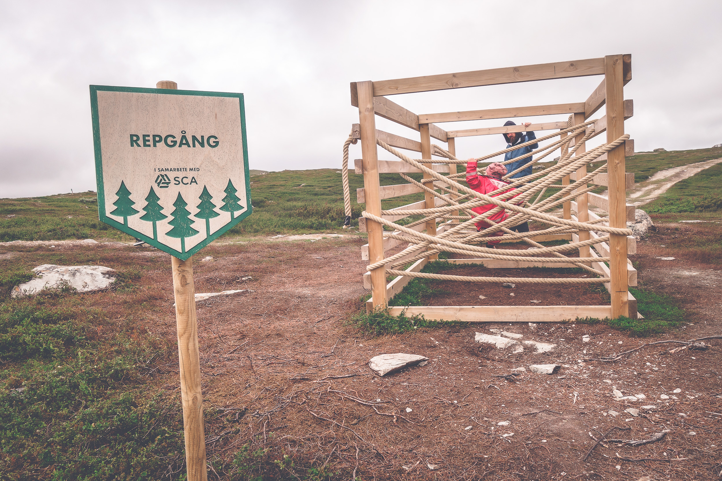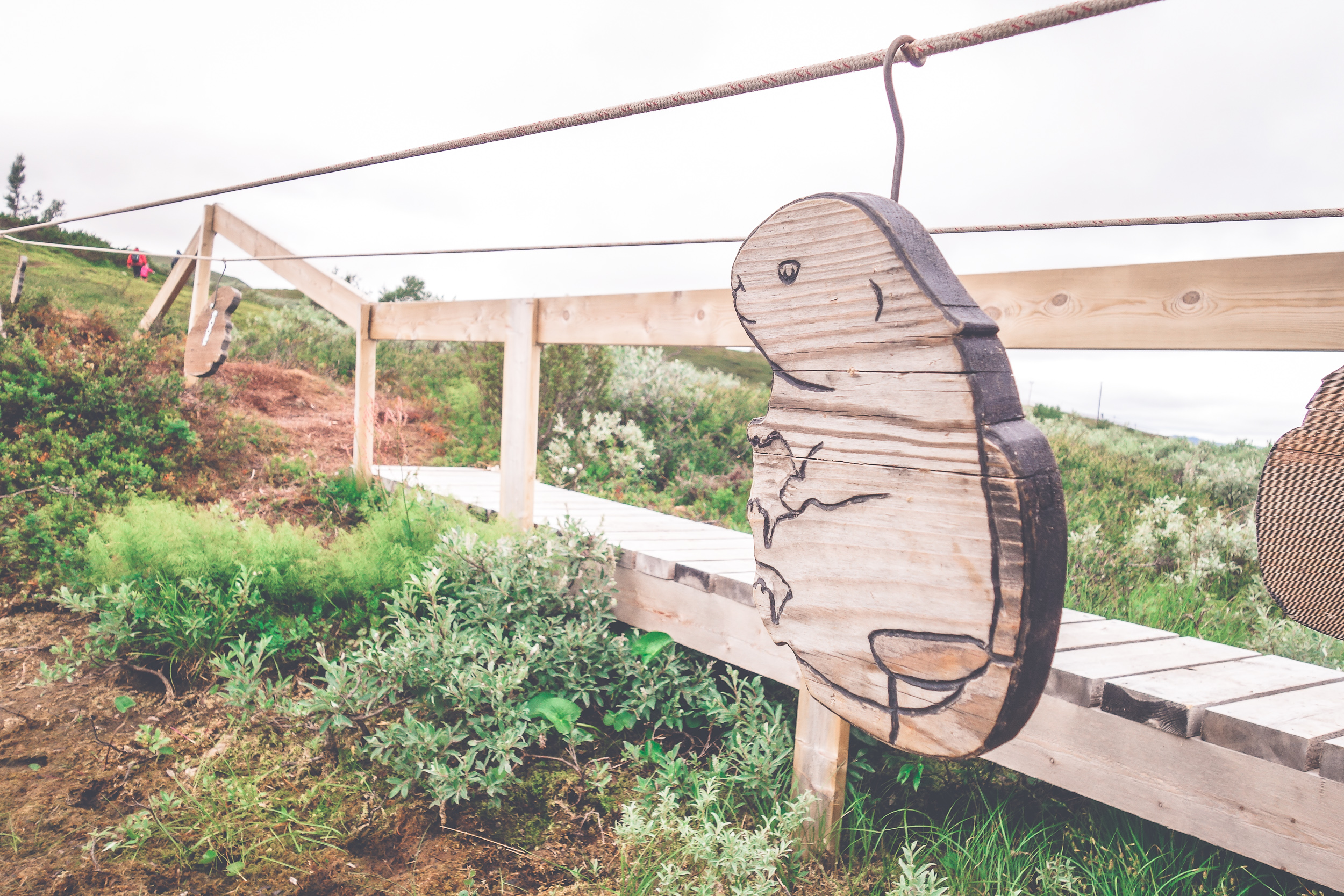 Det här är en sådan där grej jag inte hajade innan vi blev föräldrar. Nu är det här himmelrike. Skojiga skyltar och roliga saker att aktivera sig med som gör att barnen inte tycker att de är ute på en fjällvandring utan ett äventyr. Hela tiden pepp på vad som kommer näst går det lekande lätt – knappt så man behöver muta med saker att äta.