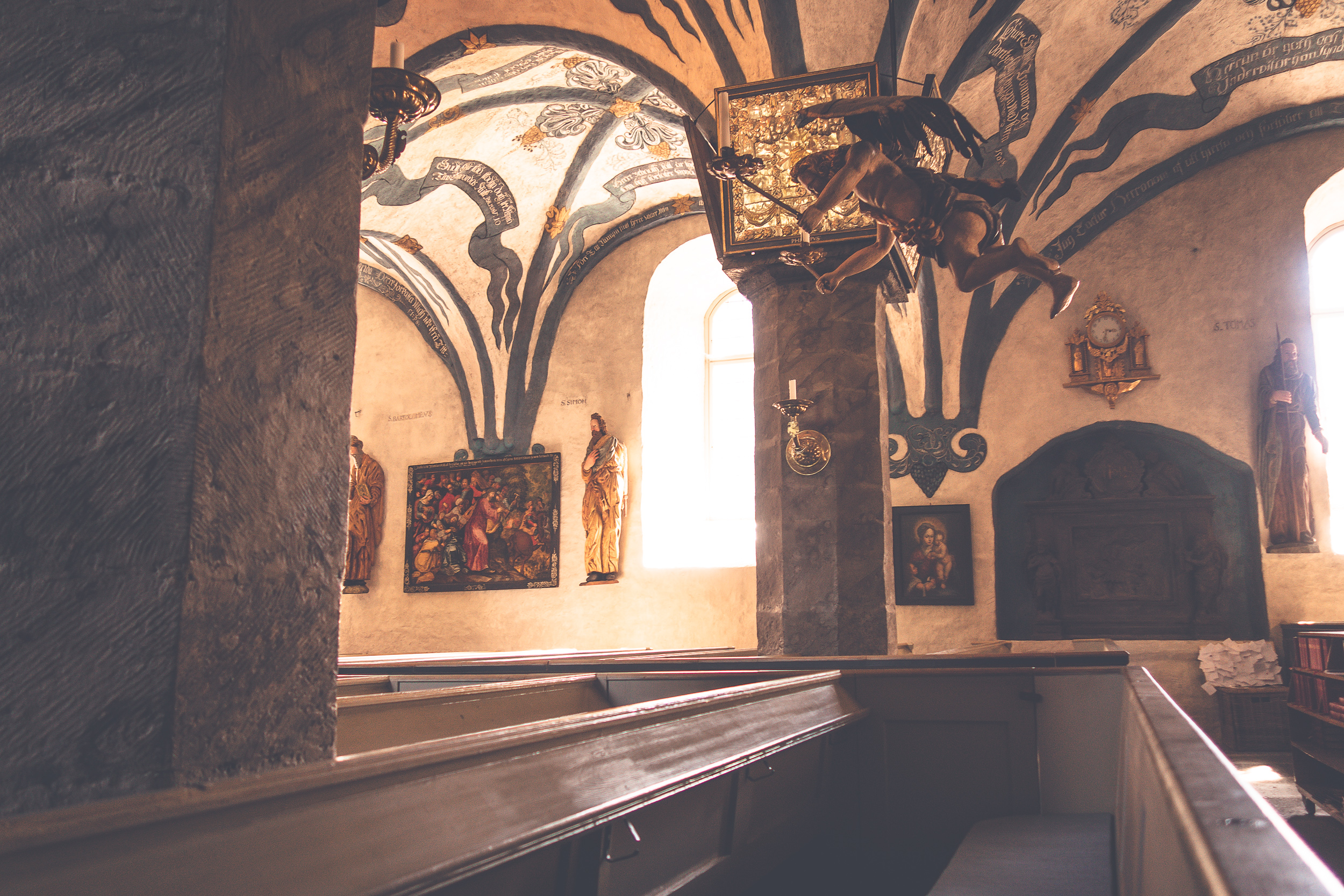 Brahekyrkan var dagens överraskning. Den är från 1600-talet, då byggdes en kyrka från 1100-talet om och delar av den finns kvar därinne. Vi ställde en liten fråga till kyrvärden och det slutade med att vi fick lära oss massor och se saker vi inte hade tänkt på. Kan vara mitt bästa Visingsötips – fråga kyrkvärden i Brahekyrkan något!