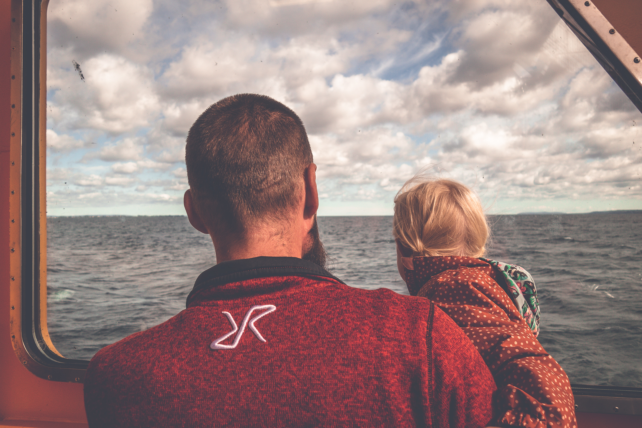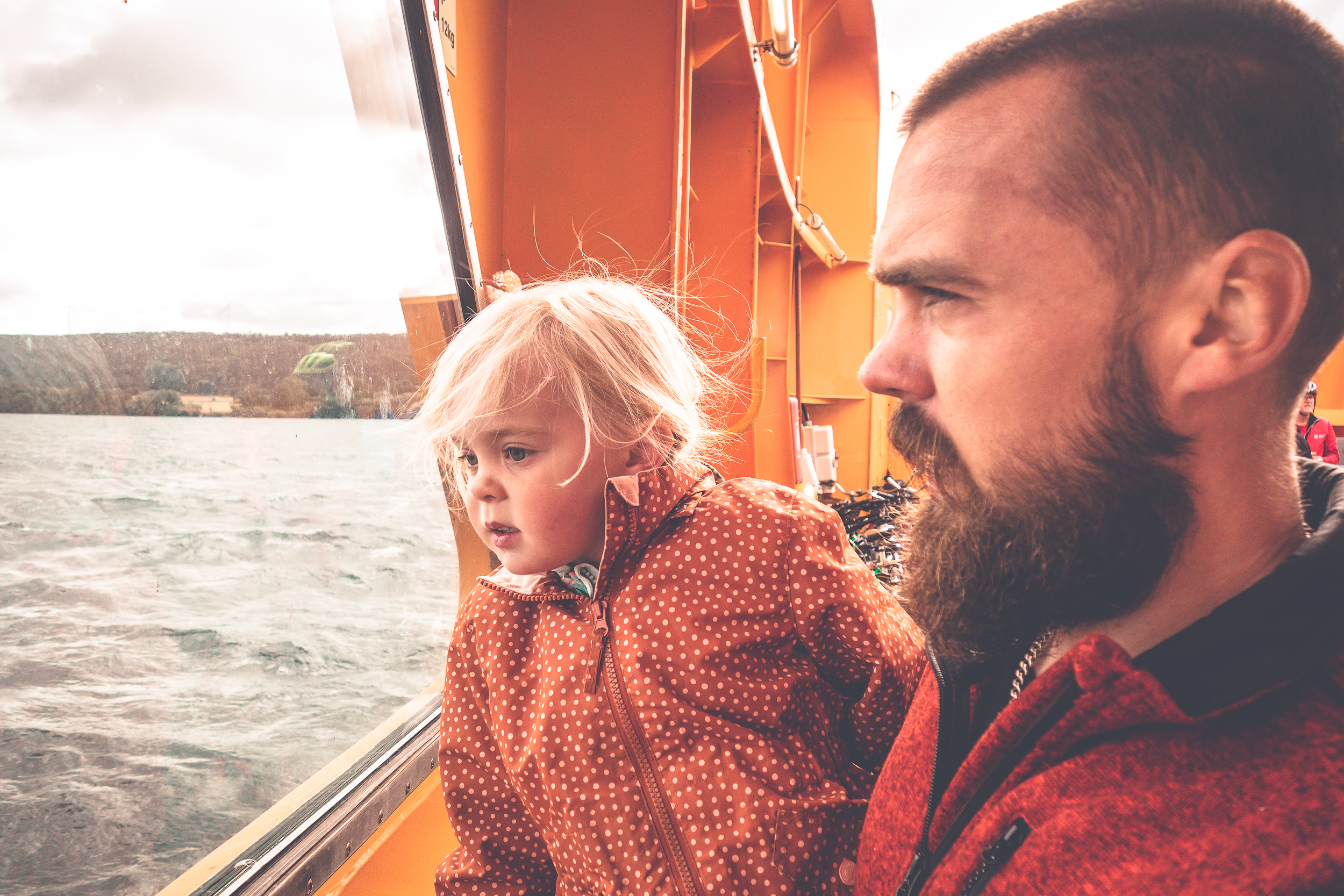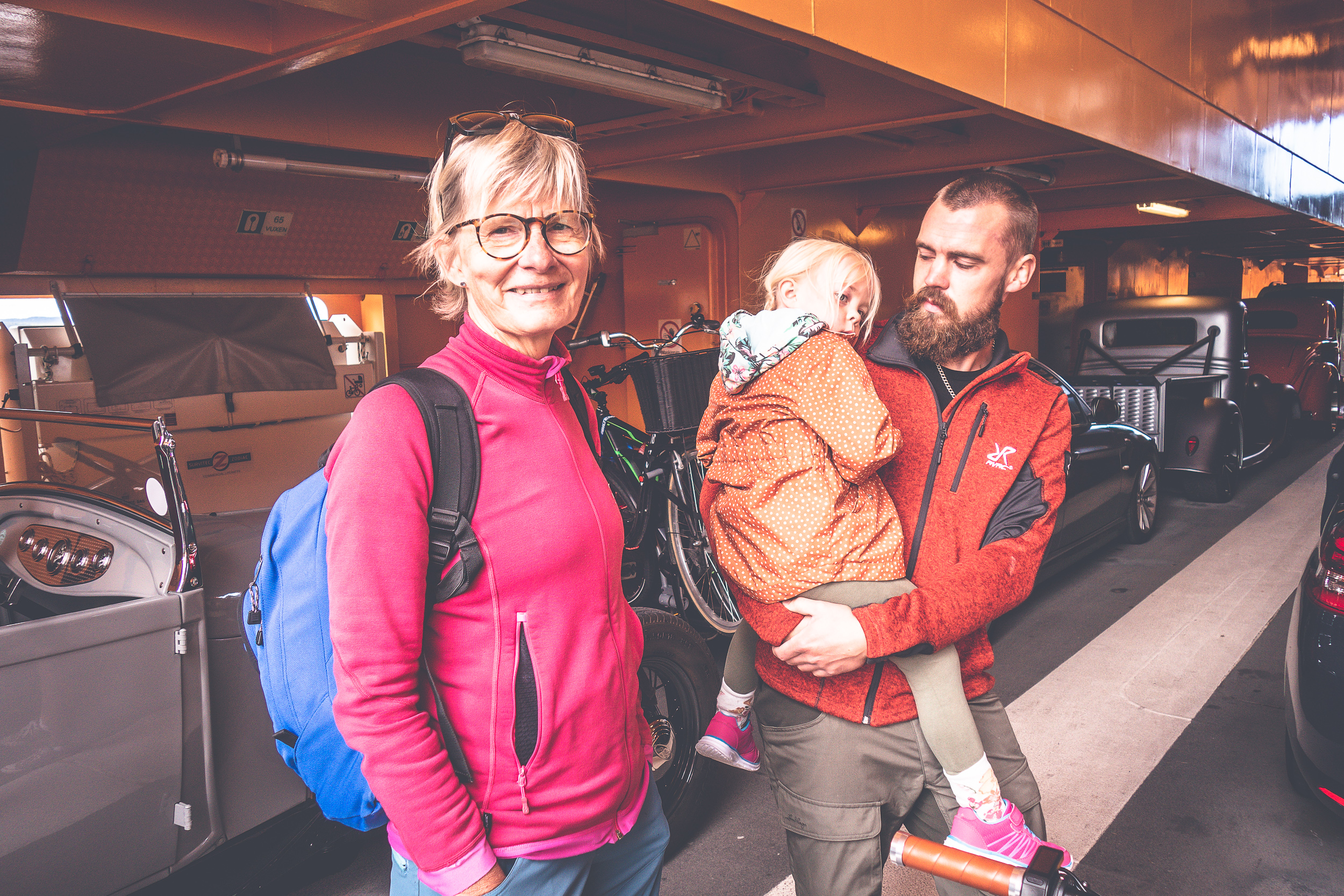 Mamma, Jimmy och Lovis på Visingsöfärjan.