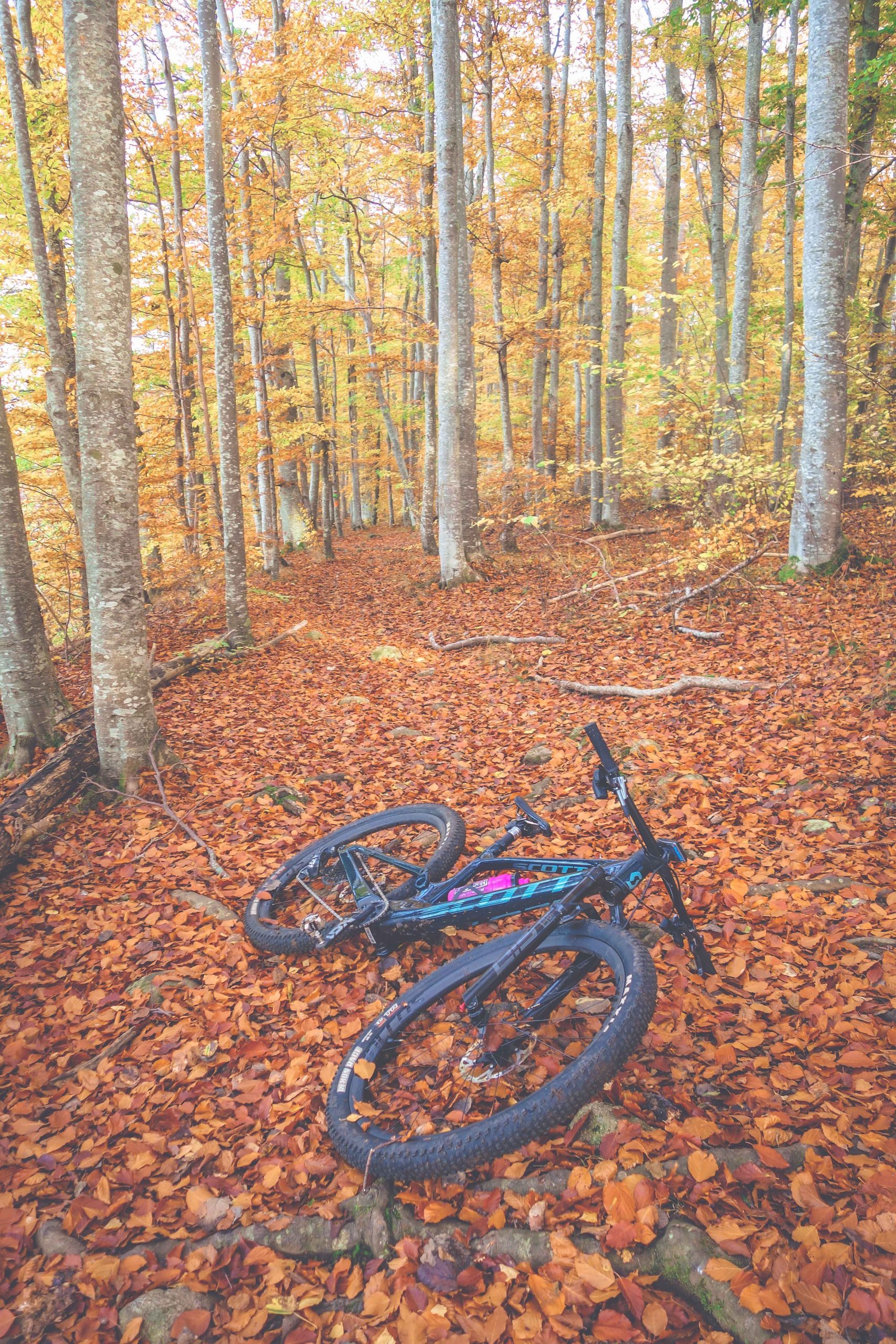 Min sista i kortkort gick på stigar som inte gick att se för de var täckta av löv. Det var ett par veckor sedan nu och det var ett makalöst vackert pass. Marken i bokskogen var täckt av prassliga, blanka, vackra, bruna löv – det finns nog inga vackrare löv att cykla igenom än de som fallit i en bokskog.