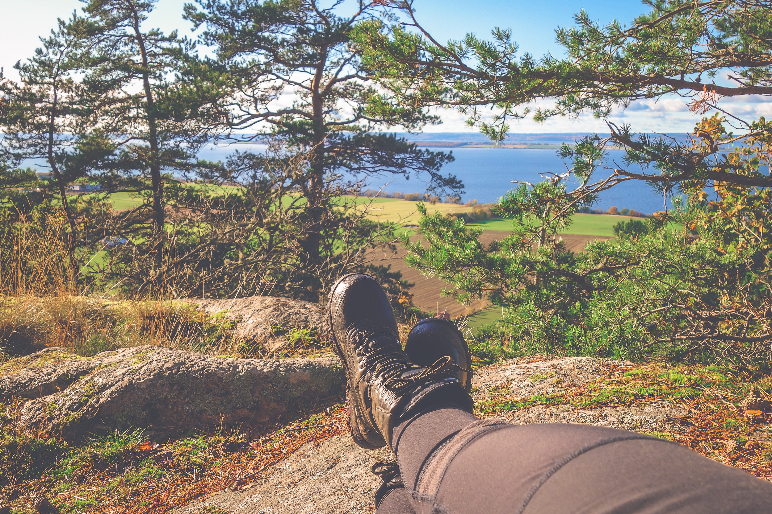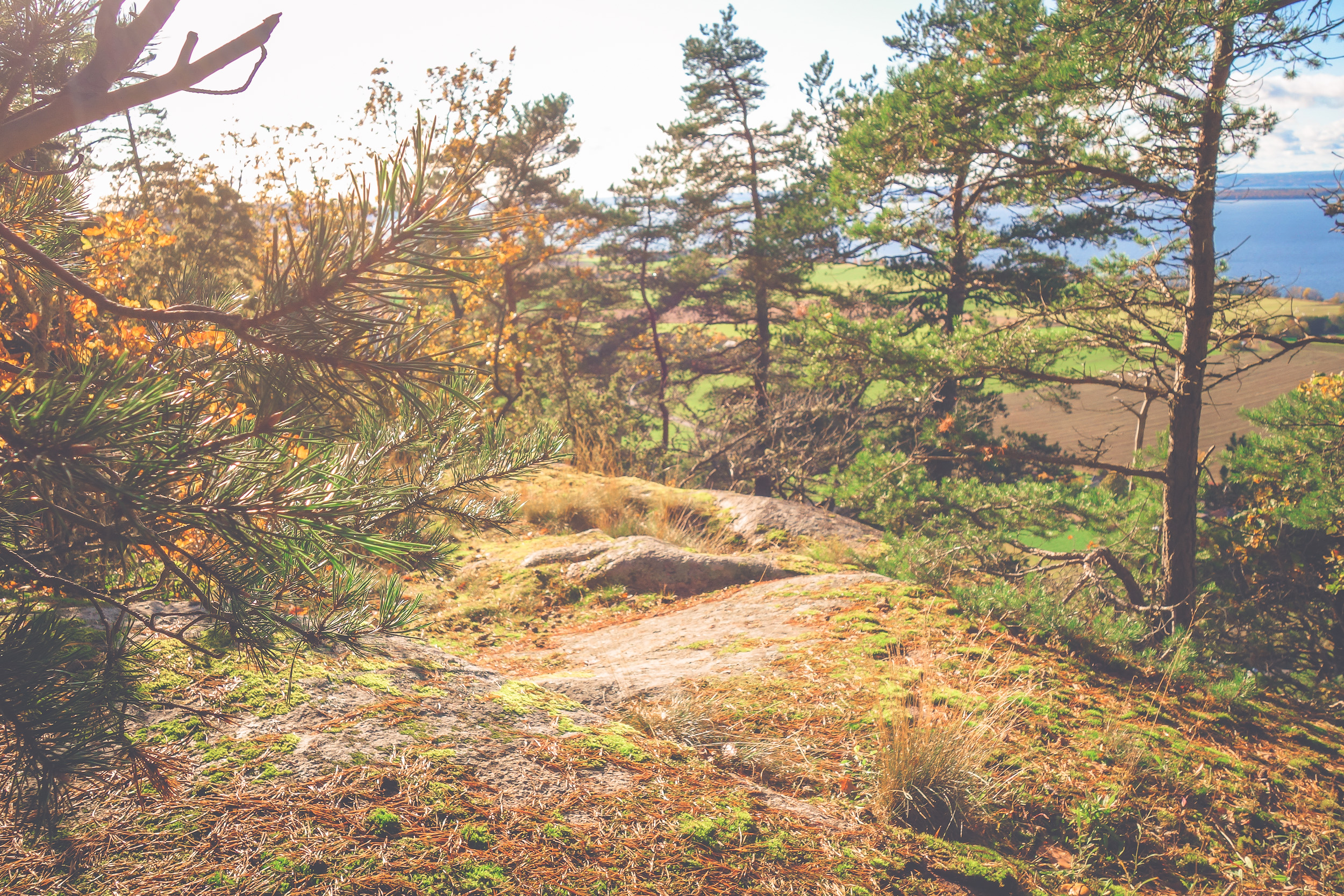 Kommer aldrig någonsin tröttna på utsikterna häromkring. Fast jag ska erkänna att här – vid Brahehus – blir det vansinnigt vackert på bild men på riktigt störs man av E4 som dånar i bakgrunden. Man behöver som tur är inte gå så långt på leden innan berget tar hand om ljudet och det tystnar.
