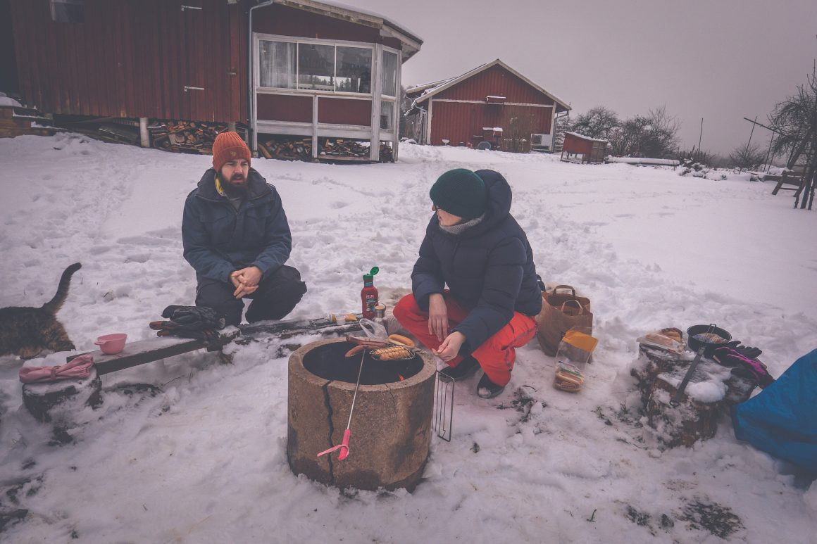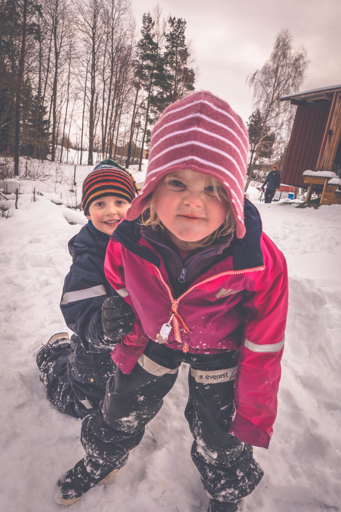Vi grillade korv också. Innan vi åt popcorn, förstås, någon ordning får det ju vara även utomhus. Min bästa vän Sara var förbi och vi hann prata en del medans barnen stojade i snön. Ljuvligt. Snowracer och skogshärj på det.