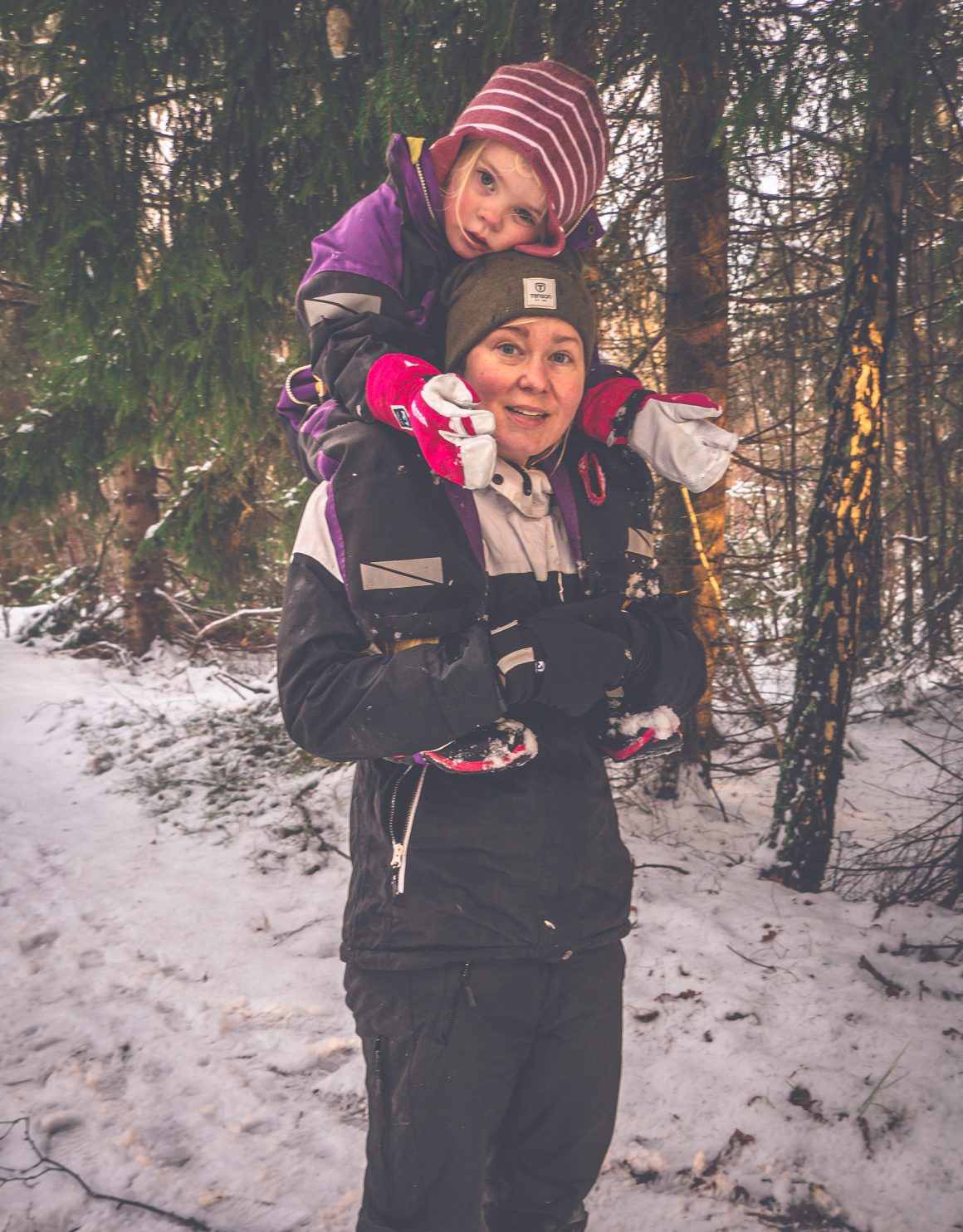Efter många timmar utomhus var både barn och stora en gnutta trötta. Jag fick langa upp Lovis på axlarna och tänkte att det är så himla härligt att vara en mamma som orkar bära, dra, släpa, hoppa och springa. Älskar att vara en sådan mamma.