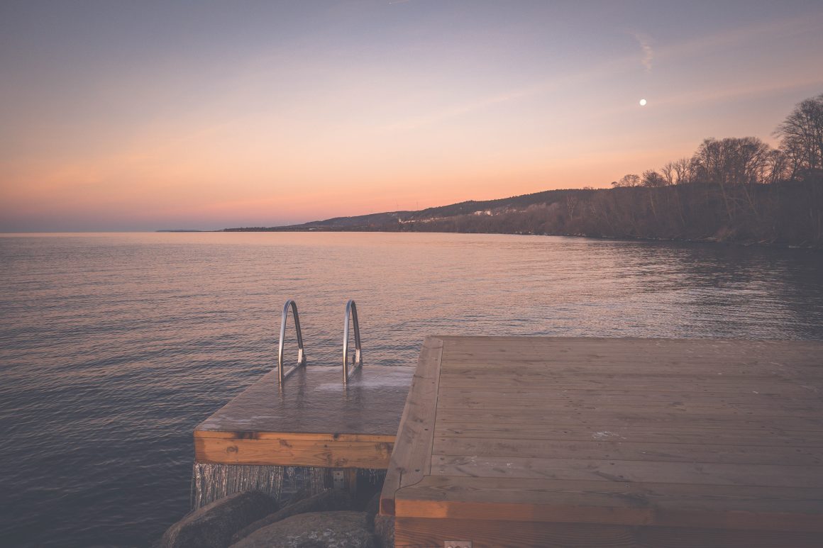 Vi fångade de gyllene timmen i eftermiddags. Vi kom hem efter ännu en dags flytteri – och så kände vi att vi behövde utflykt. Solen dalade över trätopparna och vi bestämde oss för att skynda till Röttle och se solnedgången, vinterbada och kasta lite sten.