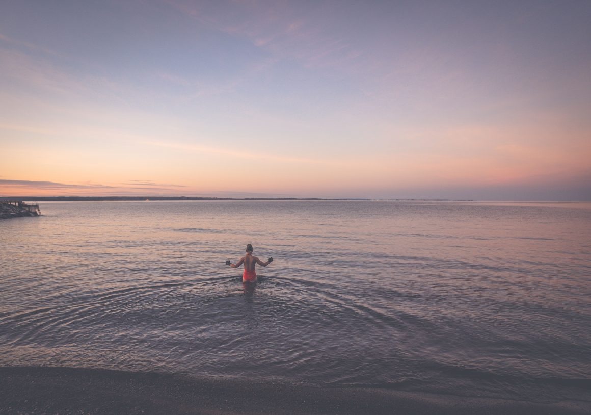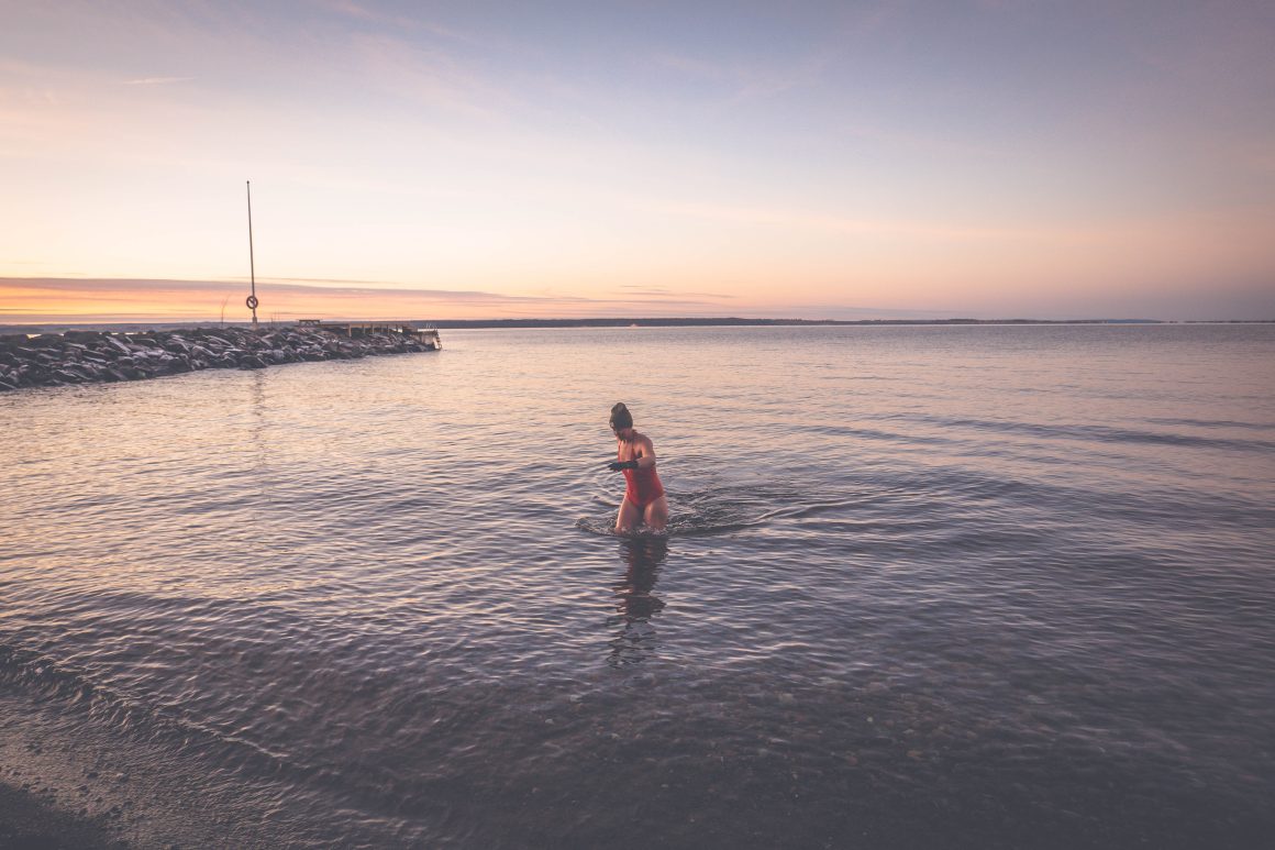 Jag doppade mig på mitt favoritvis – jag vadade i från stranden och det var som det är, obehagligt först och skönt sedan och jag kom på mig själv med att ivrigt snacka om hur härligt det är med vinterbaderi, och hur man gör och varför när förbipasserande var nyfikna.