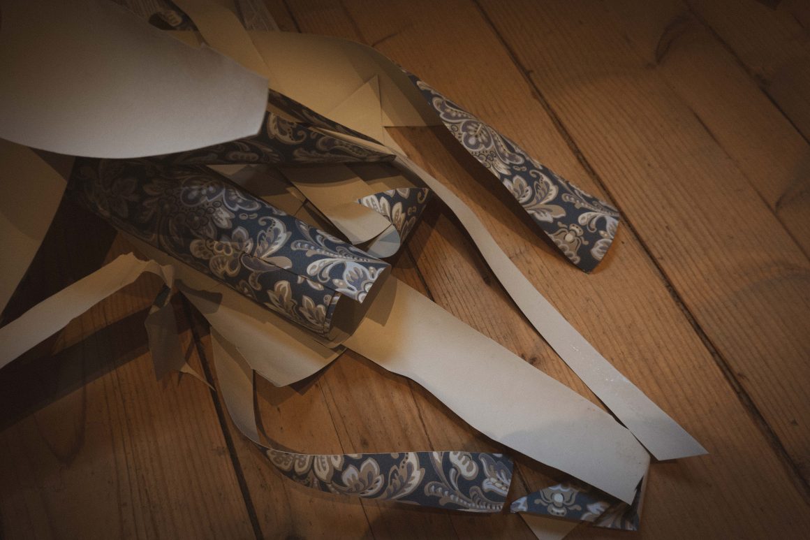 Jag har förresten skrivit lite om våra tapeter tidigare. När vi valt tapet till köket visade jag alla tapeter vi hittat i huset och när vi tapetserade köket visade jag vad vi hittade under det översta lagret. Och så har vi ju cykelgaraget – där har vi också tapetserat.