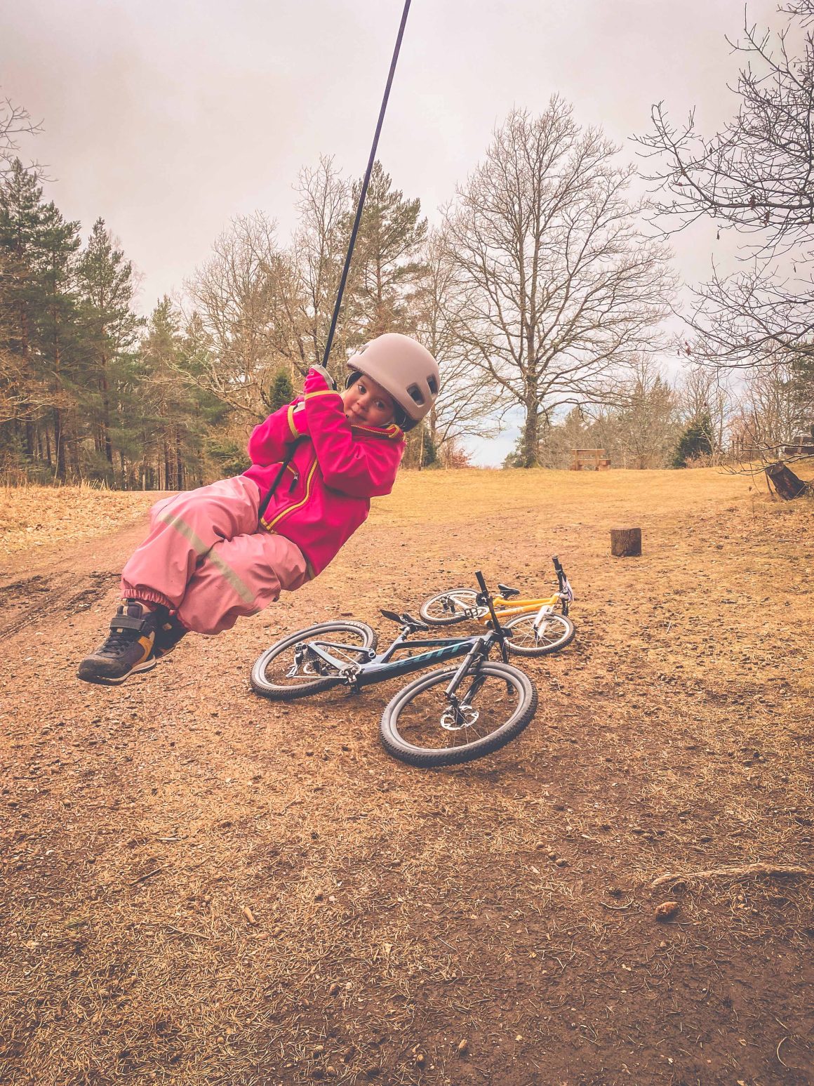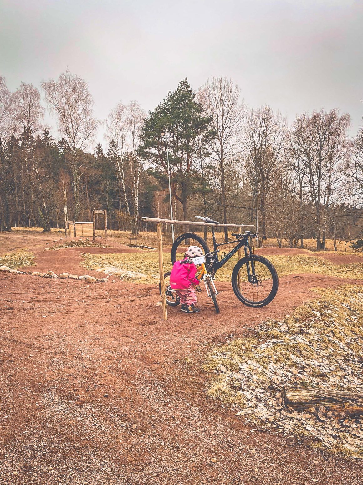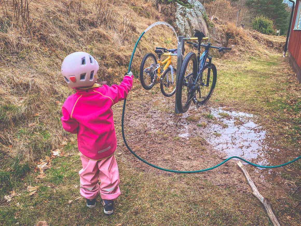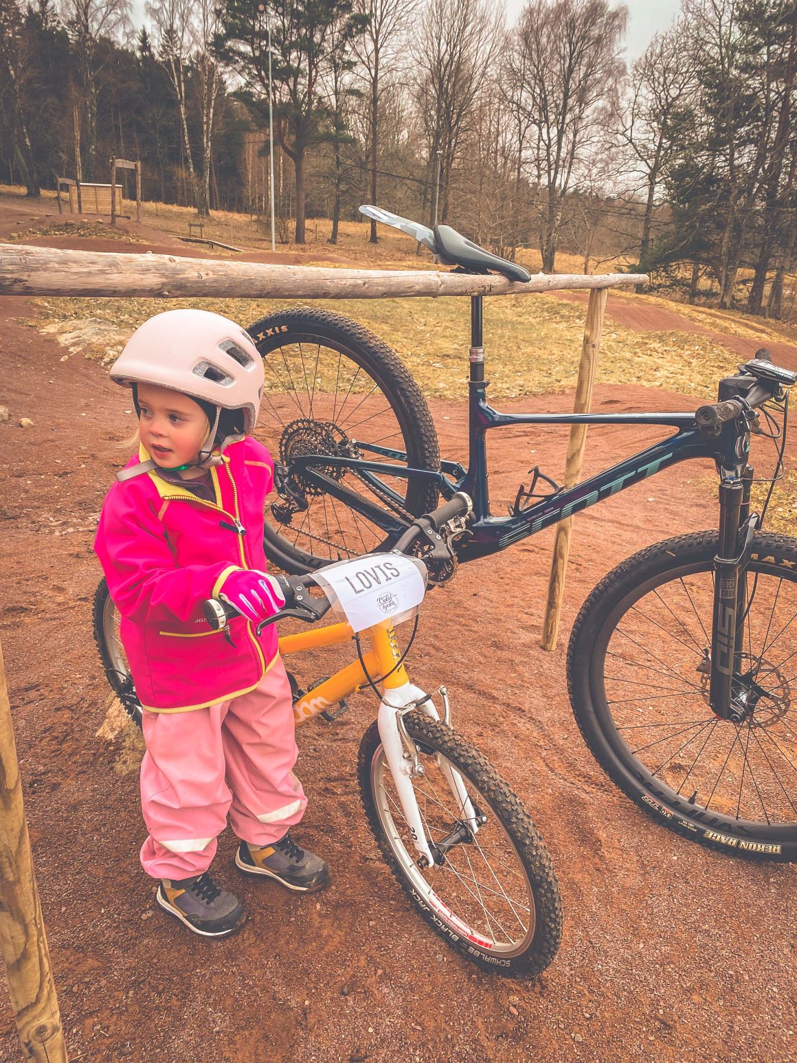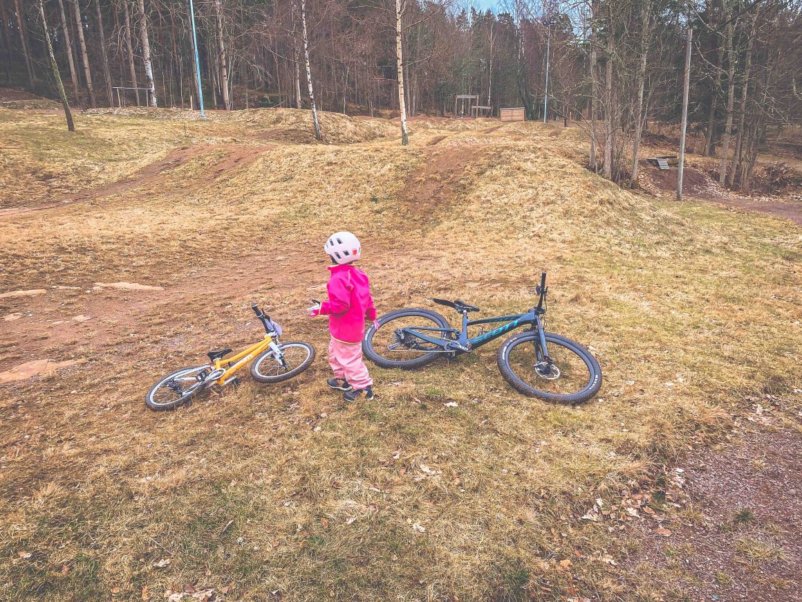 En kort inledning, en kort fika – redo för mer. Min lilla lyfter själv ned sin cykel från upphängningsanordningen i GBOK MTB Arena – hon jublar och bubblar. Helt själv! Två varv till i pumptracken och sedan en paus för en lång utläggning om sådant som är viktigt när man är fem och ett halvt.