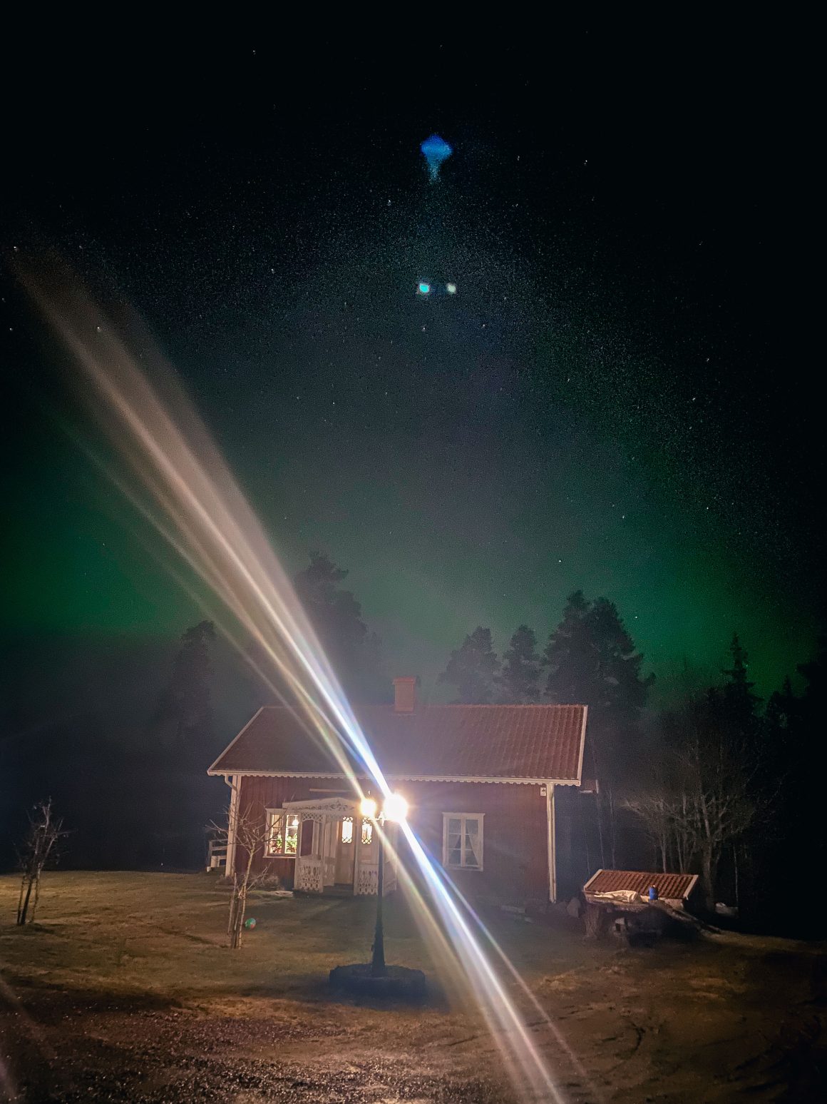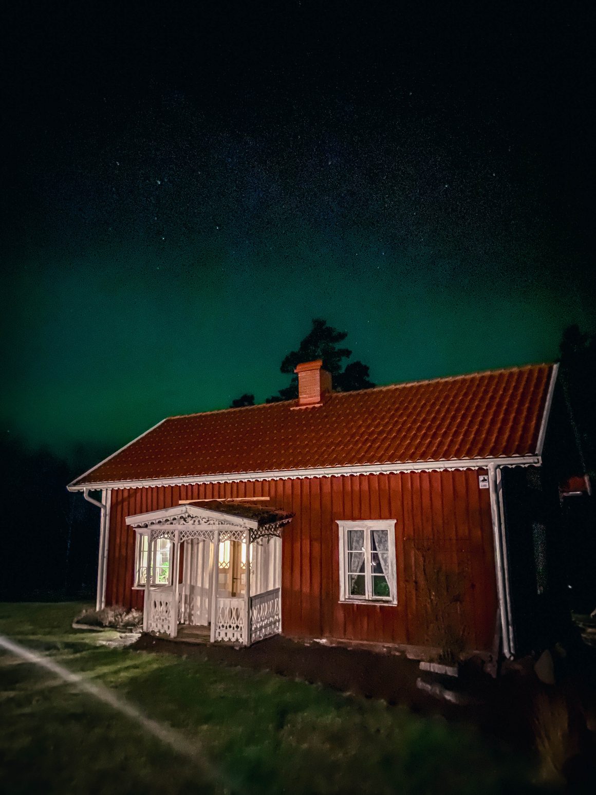 Tänk. Norrsken över vårt hus. Det har stått här sedan 1700-talet och troligtvis sett många norrsken komma och gå men det här var det första jag såg.