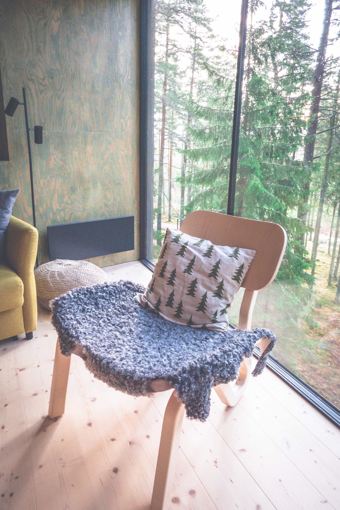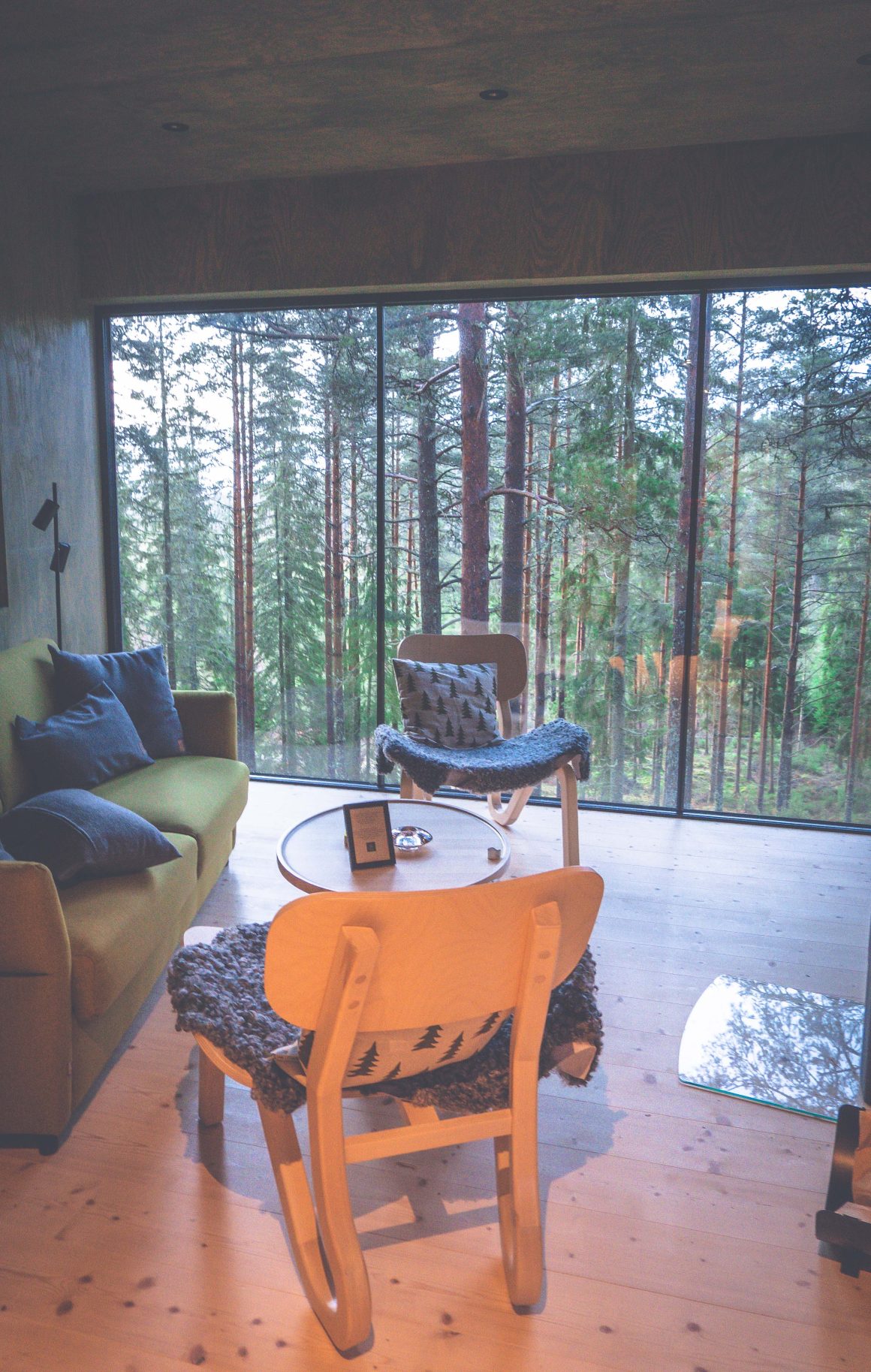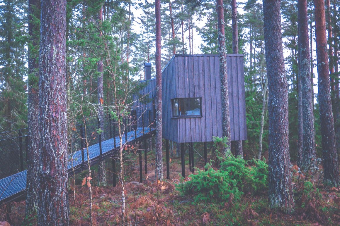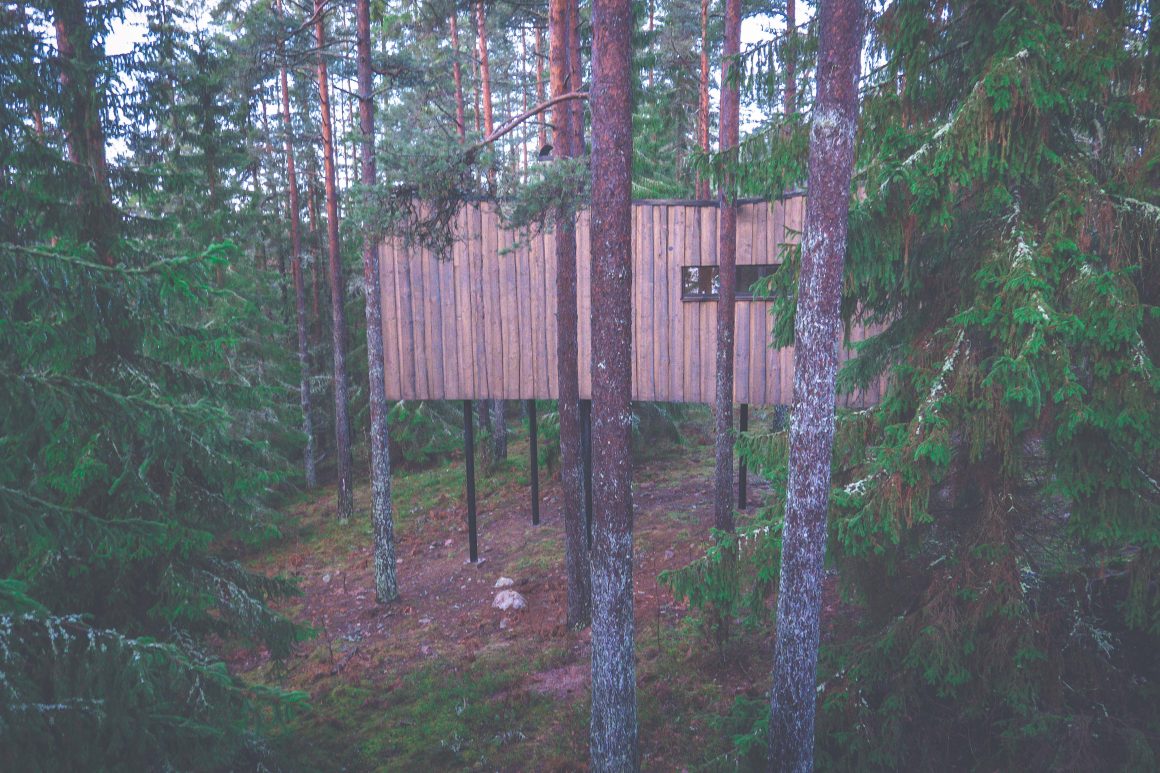 Grejen med Trakt Forest Hotel är de arkitektritade skogssviterna i kombination med ett fantastiskt kök. Sviterna är trädkojor på höga pelare inbäddade i gammelskog på en höjd. Det finns stora fönster ut mot skogen och det finns takfönster i sovrummet. Gert Wingårdh har ritat och upplevelsen styrs av årstiden.