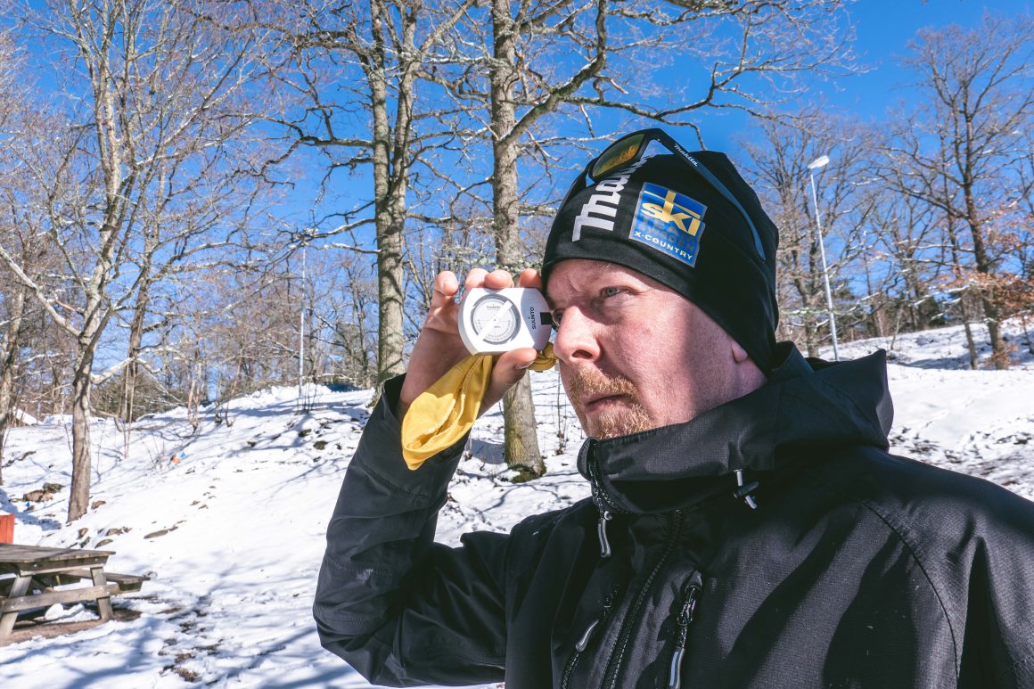 Hela gänget gjorde en vandring i det område GBOK har möjlighet att utöka sin arena i. Med hjälp av mätinstrumentet clinometer kan man navigera sig runt i terrängen och designa en led som har rätt medellutning för den färggradering leden ska ha. Olika intressanta punkter binds samman – viktigt med signature spots och ställen där leden kan följa naturen samt platser att undvika för att minimera dräneringsarbetet.