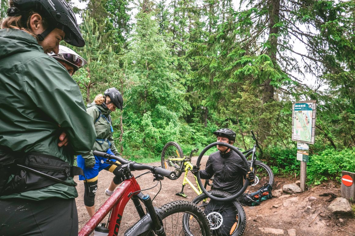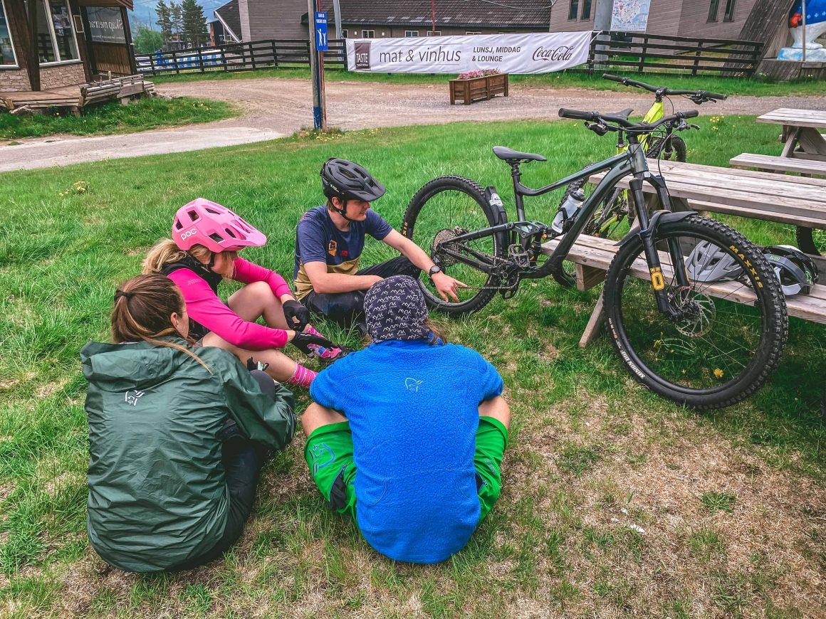 Vi har lärt oss att läsa av och svårighetsgradera naturliga stigar, vi har fått massor av smarta tips och knep som gör olika sorters haveri enklare att lösa, vi har scenariotränat olyckor, vi har gjort riskvärderingar och säkerhetscheckat våra egna och varandras cyklar tills kollen satt i ryggraden.