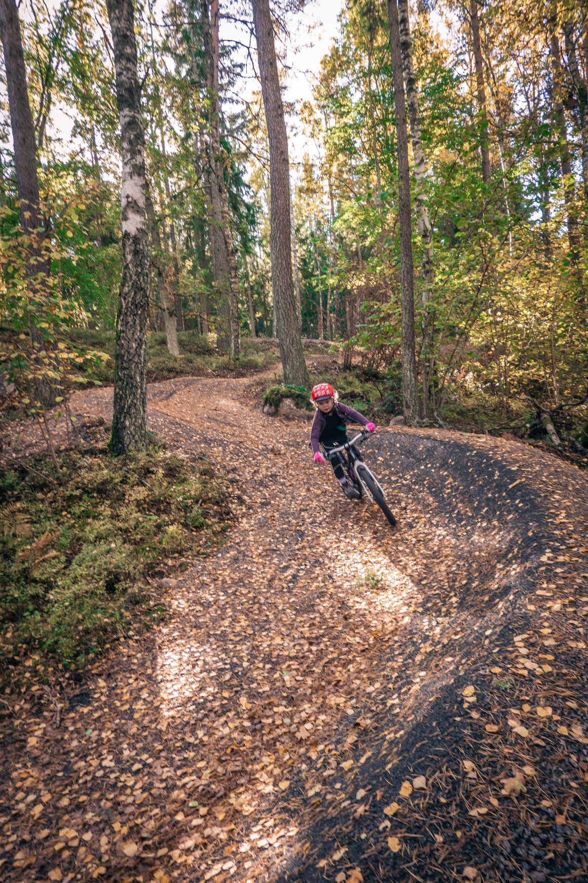 Det är viktigt att ha med sig att barn som kör flowtrails och längre utförslöpor inte blir trötta i benen – de blir trötta i armarna. De får lägga mycket kraft på att bromsa och reglera sin fart och det blir snabbt jobbigt. Ju tröttare armar, desto svårare att bromsa och desto svårare att styra och såklart: desto större risk att vurpa.