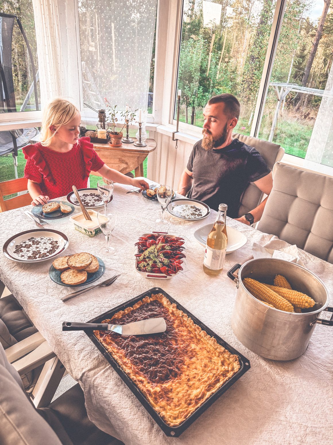 Vi passade på att åka och bada, vi passade på att sitta i uterummet och fika, vi passade på att äta glass. Och så passade vi på att fiska kräftor och ha en kräftskiva för tre med de tjugo kräftor i godkänd storlek vi drog upp en kväll. Vi passade på kompislek och egentid och hemmafix. Jag passade också på att heja på vänner som cyklade ett varv runt Vättern på grus.