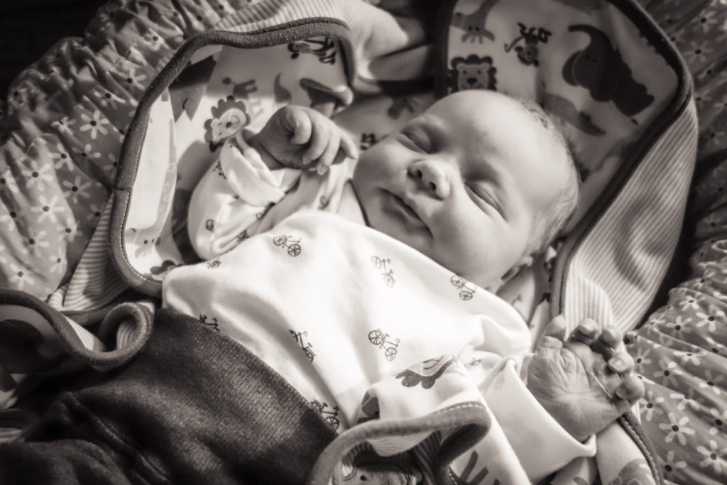 Hon föddes strax efter ett på natten och vi fick åka hem redan nästa dag. Hon är inte nes ett dygn gammal på den här bilden, just hemkommen från Ryhov.