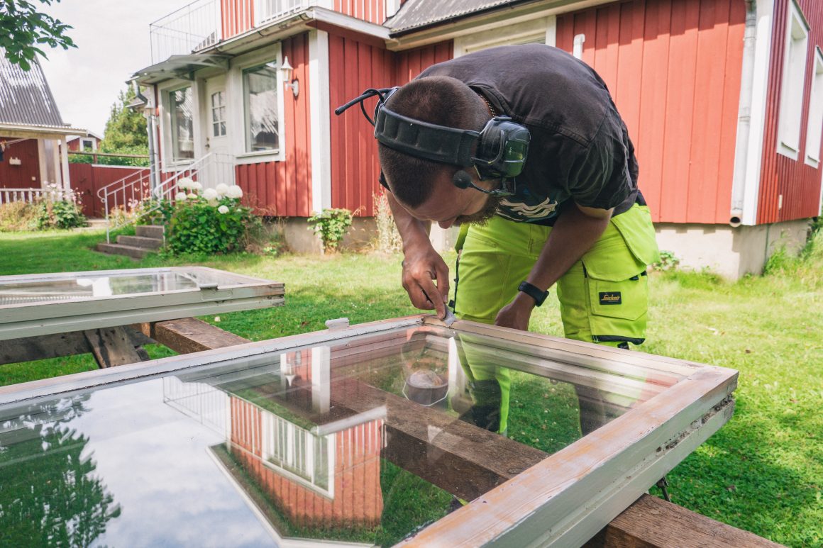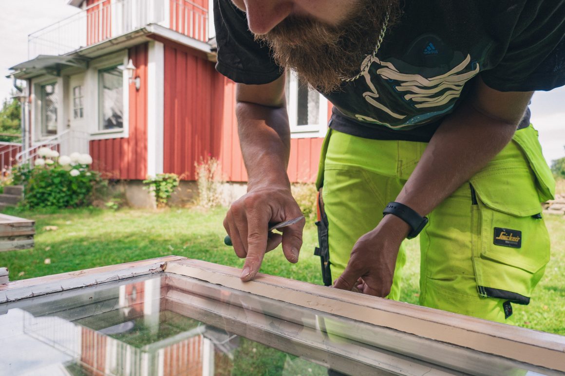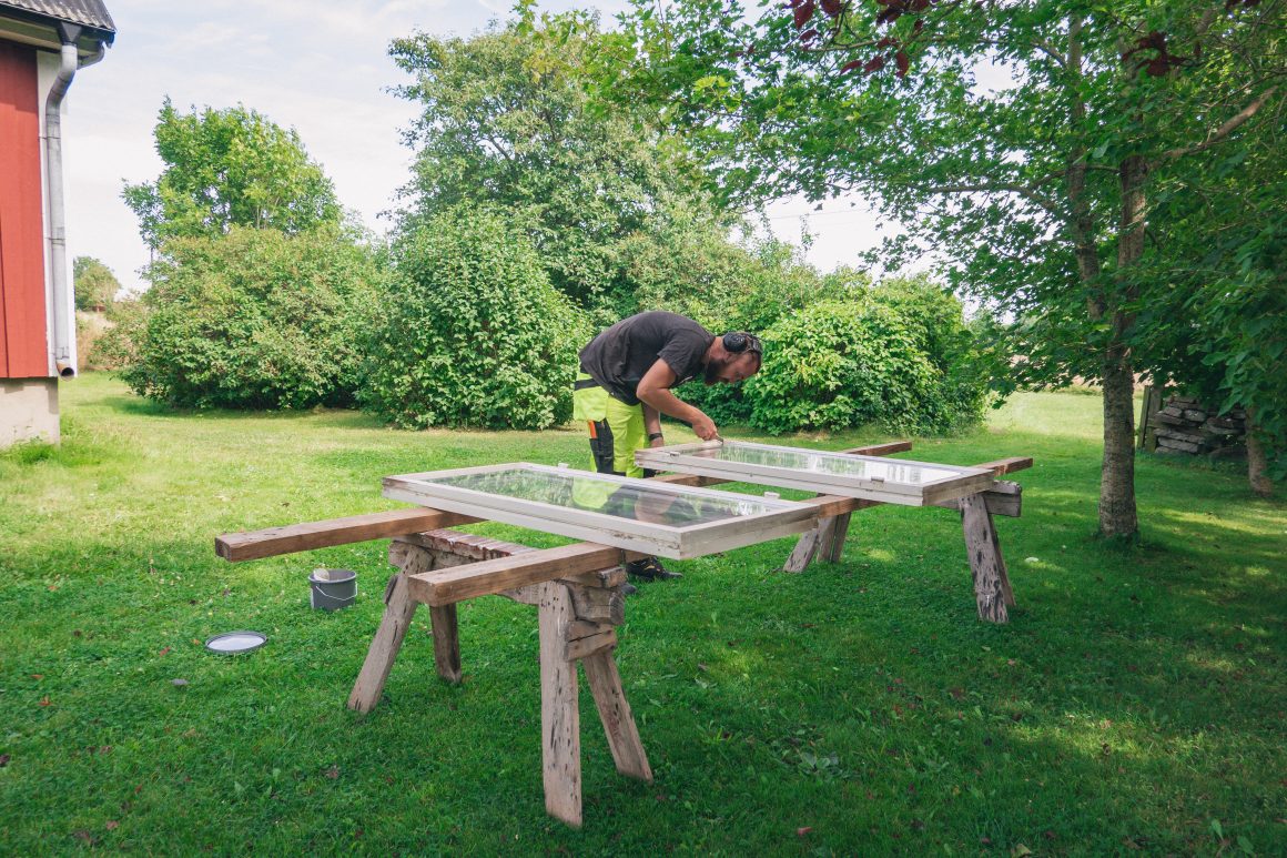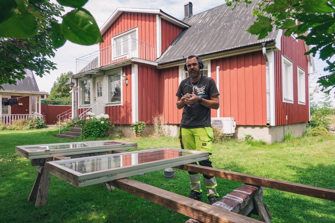 Jimmy la mycket tid på att renovera fönster i somras. Han kommer nog att lägga lika mycket tid på det i sommar också.