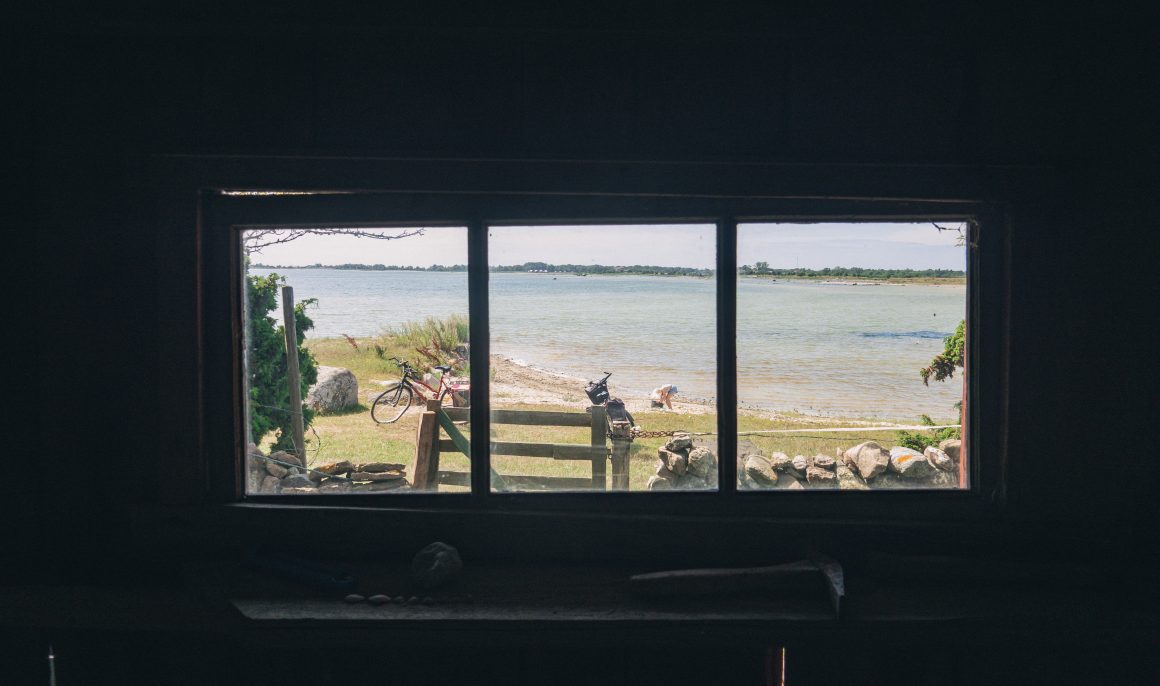 Det är tusen meter platt grusväg ner till udden och sjöboden.